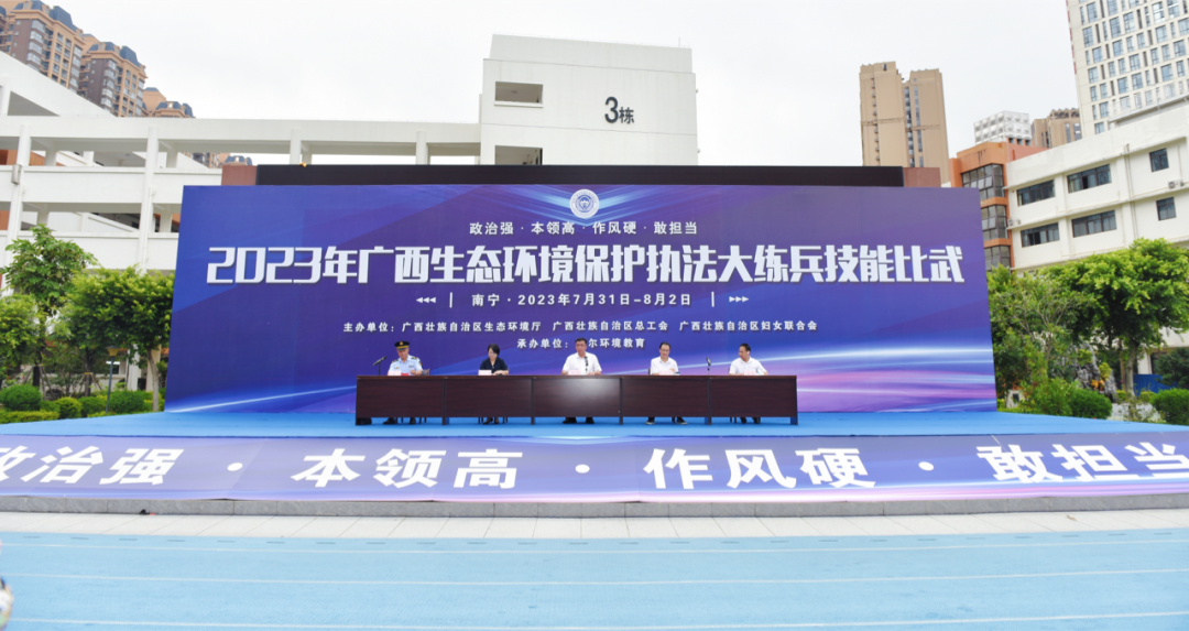 厉兵秣马淬精兵,强根铸魂塑铁军。为进一步提升生态环境保护行政执法队伍的战斗力、凝聚力、执行力,打造政治强、本领高、作风硬、特别能吃苦、特别能战斗、特别能奉献的生态环境保护铁军主力军,7月31日—8月2日,由自治区生态环境厅、自治区总工会、自治区妇联联合举办的2023年全区生态环境保护执法大练兵执法技能比武活动在南宁市拉开序幕,全区14个设区市号角催征,点兵沙场,140名生态环境执法人员同台竞技,展示新时代生态环境保护铁军主力军风采。