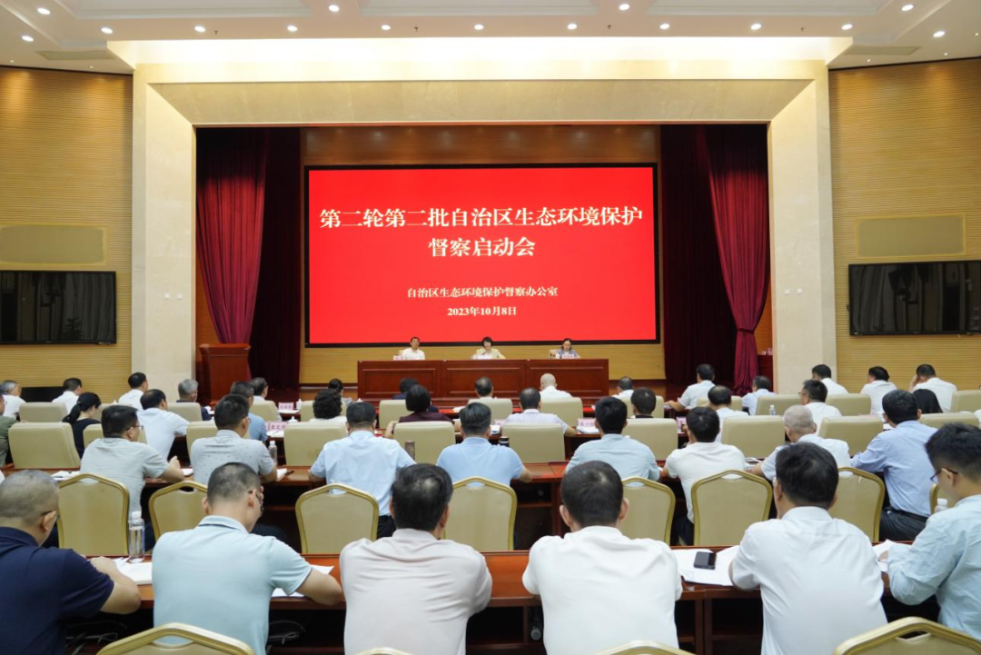 10月8日,第二轮第二批自治区生态环境保护督察启动会在南宁召开,自治区副主席、自治区生态环境保护督察工作领导小组副组长眭国华出席会议并作动员讲话。自治区政府办公厅副主任刘国晔主持会议。