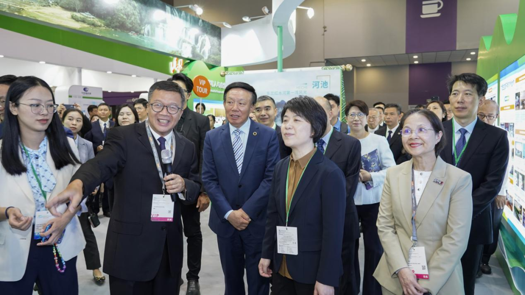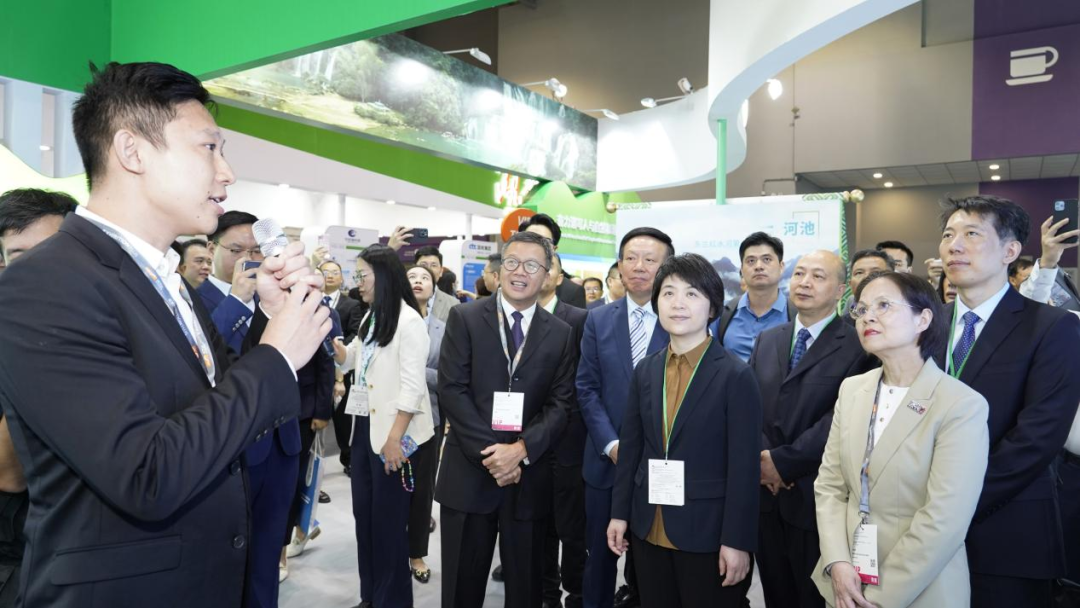 10月26日,第十八届国际环保博览在香港特别行政区举行,受邀出席开幕典礼的生态环境部党组成员、副部长郭芳在香港环境及生态局副局长黄淑娴、中国环保产业协会会长郭承站陪同下莅临广西展馆参观指导。