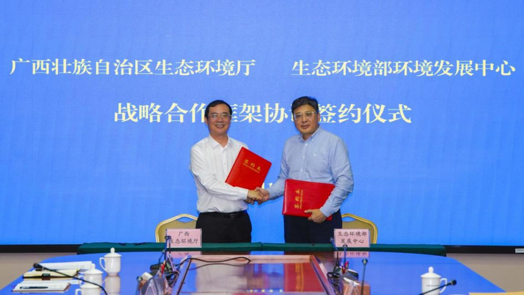 2023年11月8日,自治区生态环境厅与生态环境部环境发展中心在南宁签署战略合作框架协议。签约前,双方举行工作会谈。自治区生态环境厅党组书记、厅长陈亮,生态环境部环境发展中心党委书记、主任陈明出席会谈并签署合作协议。自治区生态环境厅党组成员、副厅长、总工程师宁耘主持活动,生态环境部环境发展中心副主任董旭辉参加活动。