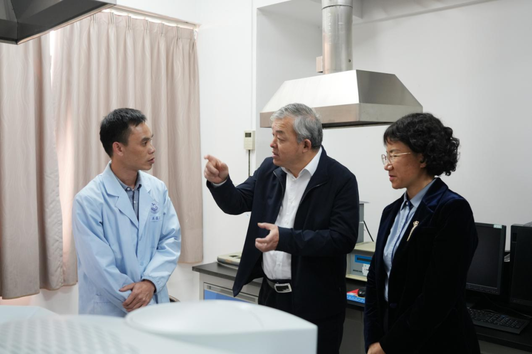 在广西海洋站科研监测楼,潘国尧一行详细了解了实验室仪器设备、人员配备、工作流程、监测分析等情况。潘国尧强调,广西海洋站承担着广西近岸乃至北部湾近海的海洋生态环境质量监测工作,一定要严守海洋生态环境监测数据的“生命线”,严格按照规范要求开展检测分析工作,确保数据“真准全快实新”,切实当好治污攻坚的监控“耳目”、前沿“哨兵”,为广西海洋生态环境质量持续改善提供科学的技术支撑。