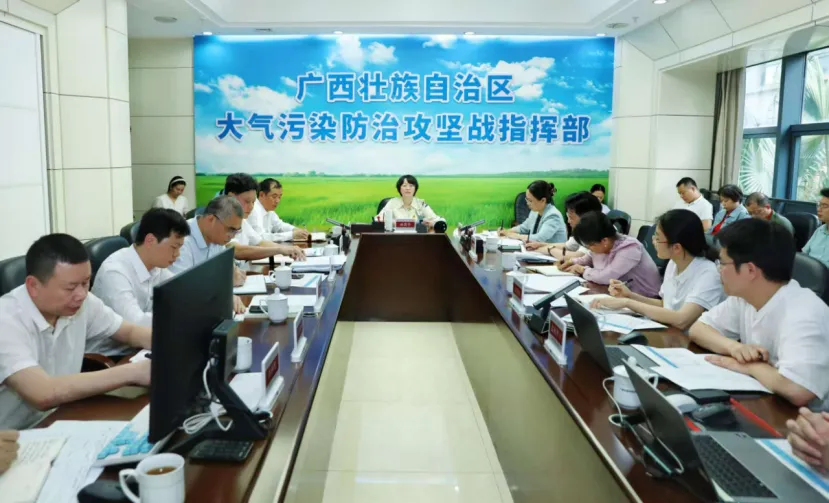 陈亮汇报了近期我区大气污染防治攻坚工作情况和存在问题。他表示,全区完成“十四五”收官空气质量改善约束性指标任务压力巨大。下一步,全区生态环境系统将贯彻落实好眭国华副主席本次会议重要讲话精神,坚决扛起生态环境保护重大责任,扎实开展大气污染防治攻坚,加快扭转我区空气质量下滑的不利局面。一是锚定PM2.5平均浓度和优良天数比率约束性指标任务,抓细抓好各项污染防控措施落实和每一轮污染过程应对。二是对照《广西“十四五”大气污染防治攻坚收官工作方案》压实责任,变“单打独斗”为“合力攻坚”。三是加快推进大气污染防治攻坚重点任务,加快钢铁、水泥企业超低排放改造和重点行业清洁运输改造,加快小锅炉淘汰和国三以下柴油货车淘汰,加强声环境功能区夜间达标管控。四是对照第三轮督察通报涉气典型案例,举一反三开展本辖区涉气环境问题排查整治。五是指导各地市做好大气污染物排放权重清单及应急减排清单编制工作,同时督促各市加快制定并印发本市大气污染防治攻坚收官工作方案。