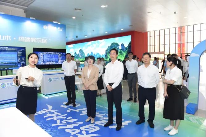张晓钦、眭国华、巫家世参观AI赋能广西生态环境保护主题展示区