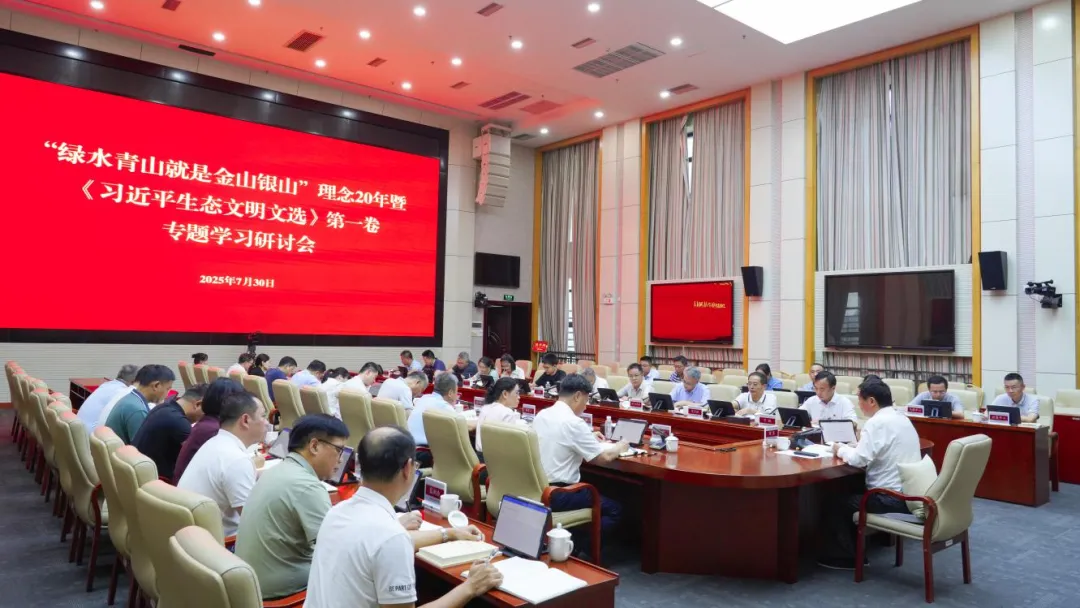 7月30日,自治区生态环境厅党组召开“绿水青山就是金山银山”理念20年暨《习近平生态文明文选》第一卷专题学习研讨会。自治区生态环境厅党组书记、厅长陈亮主持并讲话。