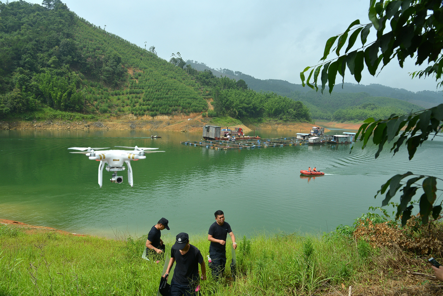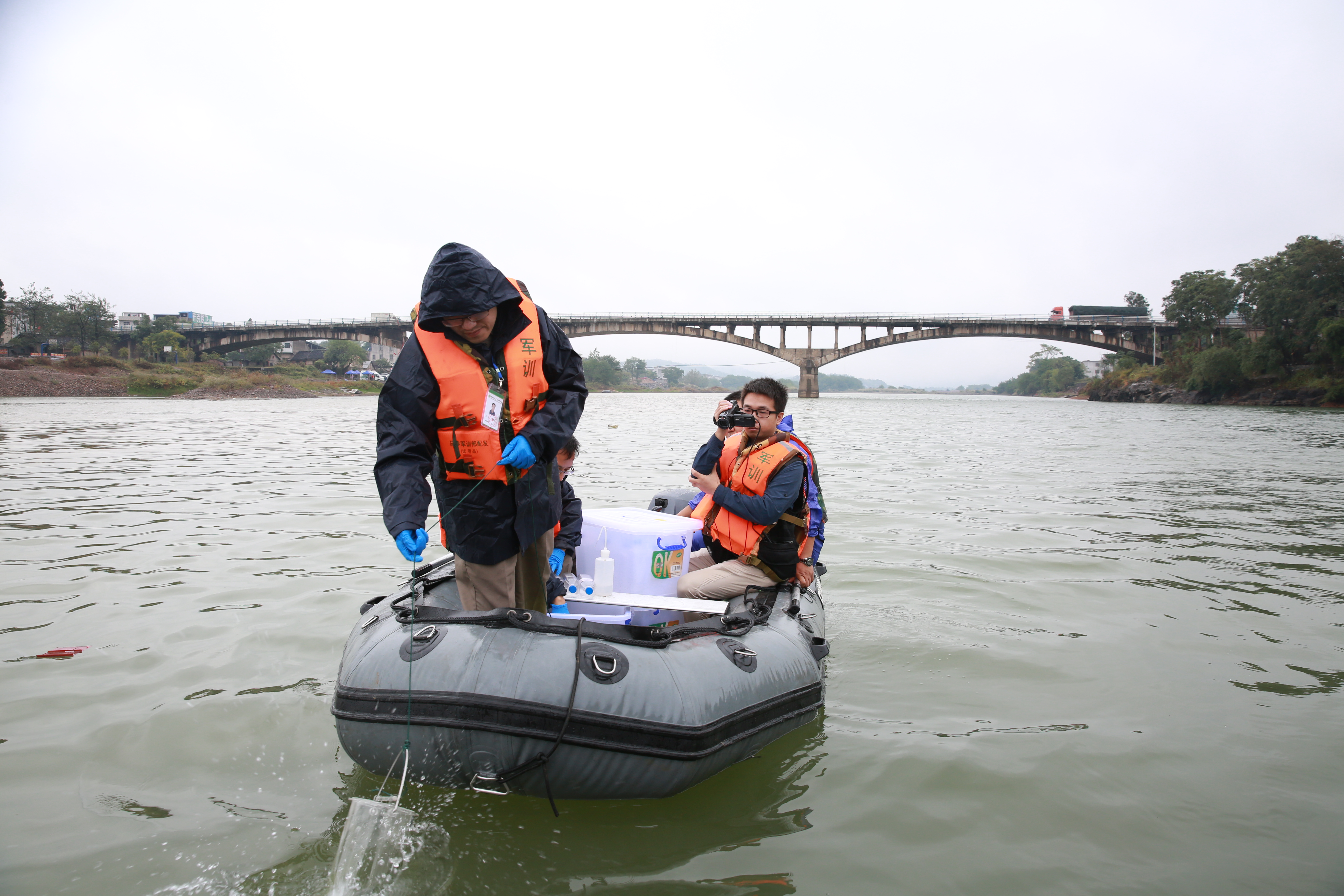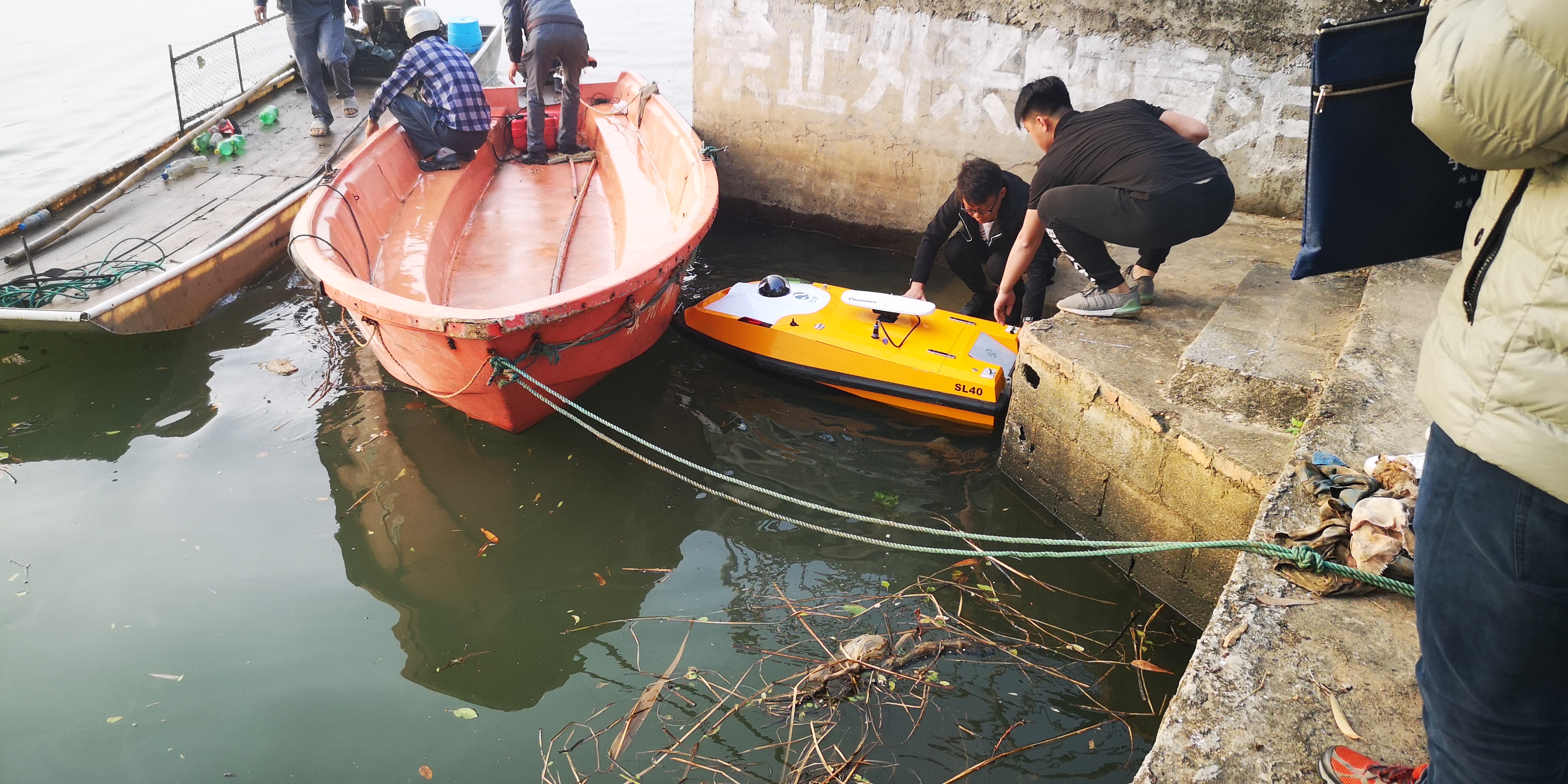 自治区环境监察总队执法人员使用无人船辅助排查钦江污染源