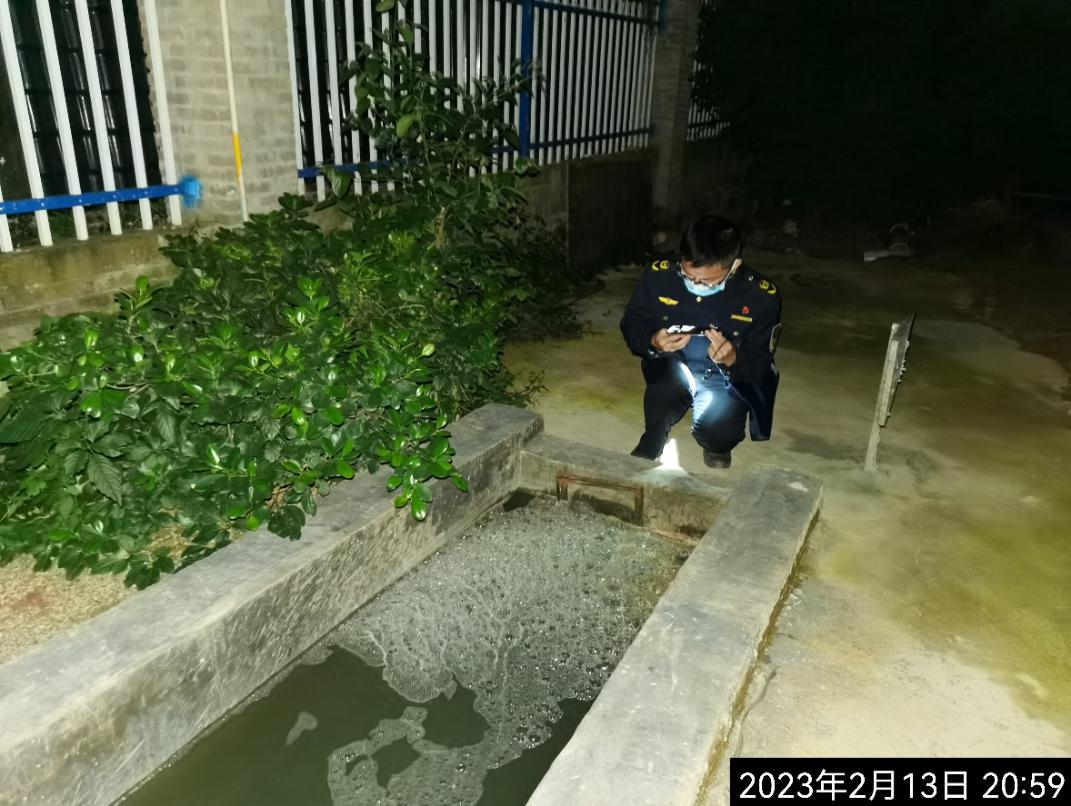 2023年2月13日晚,执法人员对该污水处理厂进行突击检查,发现废水总排口(明渠后端排口)放置挡板(1块铁板+2块木板)以提高总排口水位。此时,广西固定污染源自动监控平台数据显示瞬时流量为249L/s。查看废水总排口视频监控发现,当日18时28分,在进入巴歇尔槽排放口水量无明显变化情况下,总排口瞬时流量从72L/s突增至119L/s,随后于19时40分再突增至241L/s。执法人员对其他点位进行检查时,现场操作工擅自移除总排口挡板,总排口视频监控显示21时45分总排口流水量明显变小,自动监测数据显示瞬时流量从243L/s陡降至75L/s。执法人员调阅该厂运营记录本发现,大部分零时班、中班处理水量远高于日班处理水量(高达2—3倍),而耗电量小于或与日班持平,不符合正常规律。视频监控显示,操作人员进出总排口的短时间内,废水总排口水位出现陡增陡降的异常变化。经查,2022年10月14日至2023年2月13日的123天内,该厂总排口水位突变次数多达119次。