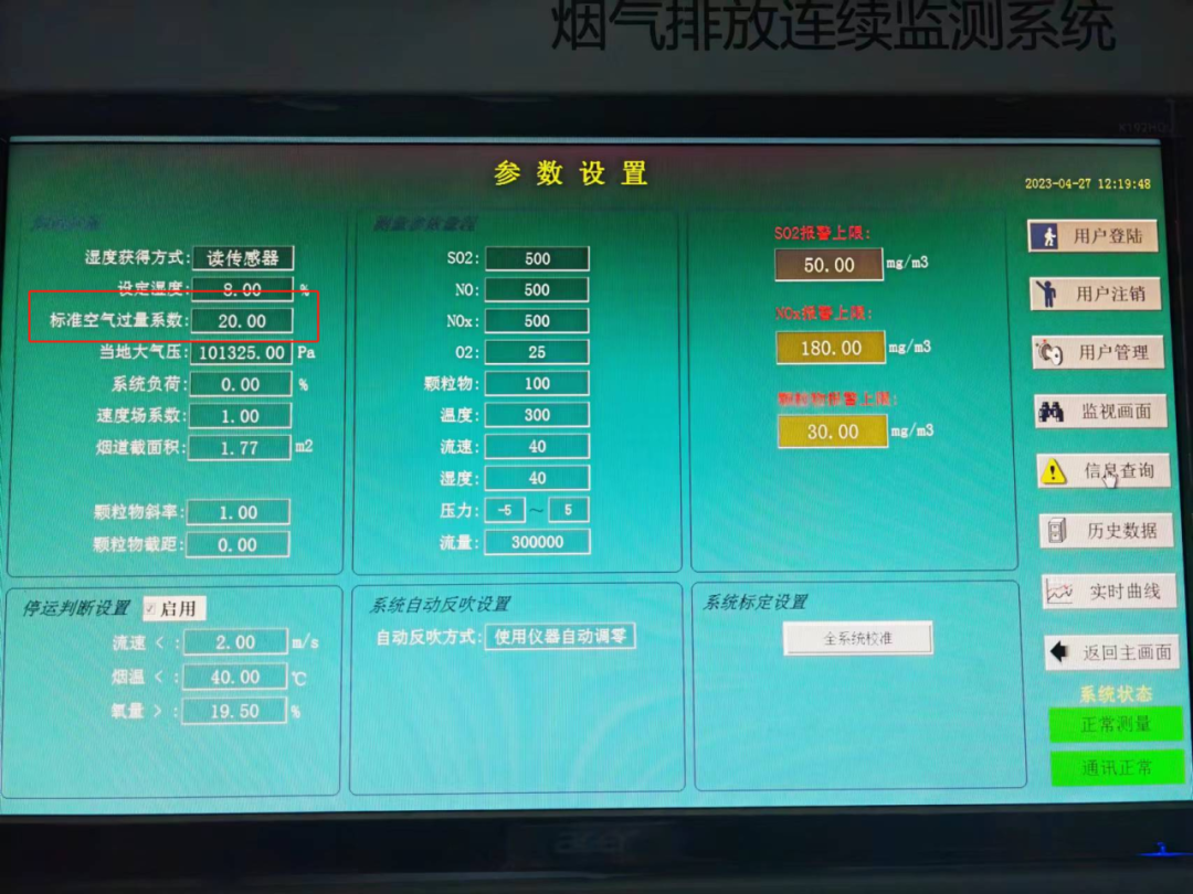 2023年4月27日,该公司自动监测设备的标准空气过量系数为20。