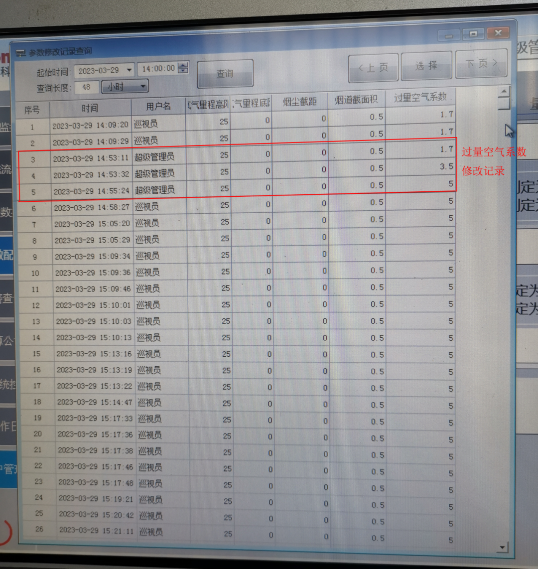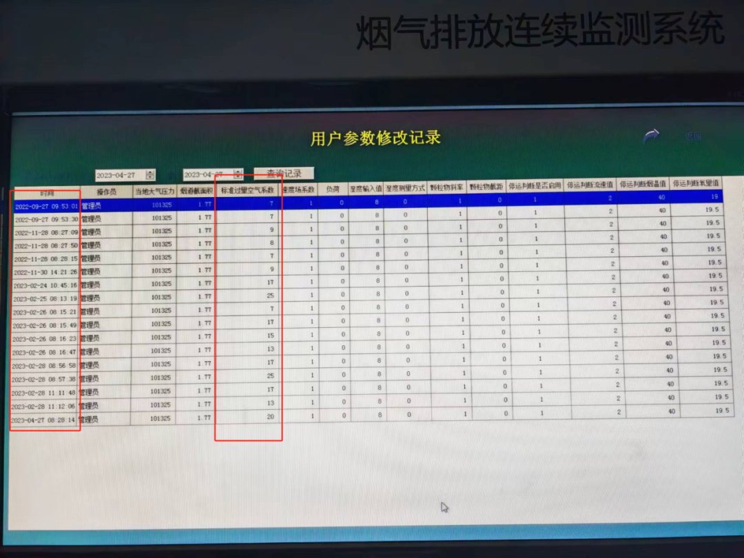 2022年11月28日至2023年4月27日,该公司自动监测设备的标准空气过量系数有15次修改记录。