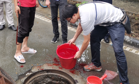 桂林市生态环境部门联合公安、城管、住建部门以及第三方技术公司对上图的污水井和桃花江入江口进行示踪实验
