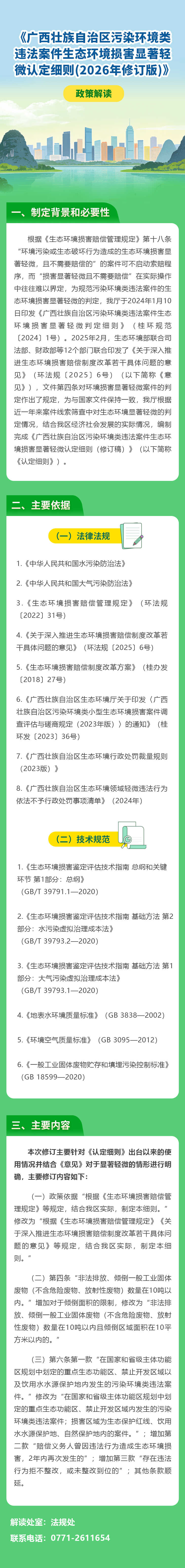 根据《生态环境损害赔偿管理规定》第十八条“环境污染或生态破坏行为造成的生态环境损害显著轻微,且不需要赔偿的”的案件可不启动索赔程序,而“损害显著轻微且不需要赔偿”在实际操作中往往难以界定,为规范污染环境类违法案件的生态环境损害显著轻微的判定,我厅于2024年1月10日印发《广西壮族自治区污染环境类违法案件生态环境损害显著轻微判定细则》(桂环规范〔2024〕1号)。2025年2月,生态环境部联合司法部、财政部等12个部门联合印发了《关于深入推进生态环境损害赔偿制度改革若干具体问题的意见》(环法规〔2025〕6号)(以下简称《意见》),文件第四条对环境损害显著轻微案件的判定作出了规定,为与国家文件保持一致,我厅根据近一年来案件线索筛查中对生态环境显著轻微的判定情况,结合我区经济社会发展的实际情况,编制完成《广西壮族自治区污染环境类违法案件生态环境损害显著轻微认定细则(修订稿)》(以下简称《认定细则》)。