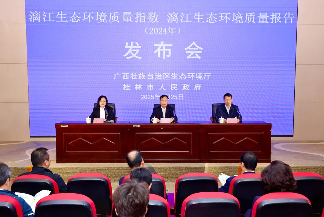2025年4月25日,广西壮族自治区生态环境厅与桂林市人民政府召开发布会,正式发布《漓江生态环境质量指数报告(2024年)》和《漓江生态环境质量报告(2024年)》。发布会介绍,2024年漓江指数为86.82,比2023年上升0.27,漓江生态环境质量稳步提升,漓江生态环境保护工作取得新成效。
