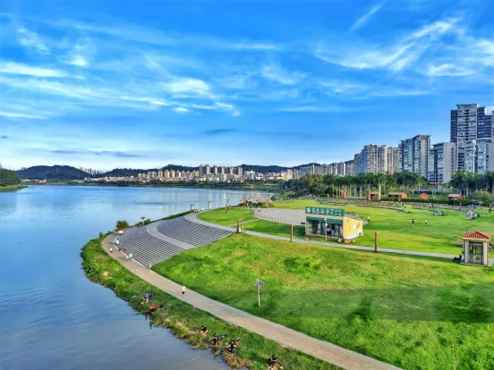 如今的邕江,自2019年起实现“Ⅱ类水入城、Ⅱ类水出城”,老口、六景国控断面水质稳定保持Ⅱ类以上,南宁市地表水水质优良比例连续多年100%。两岸建成15个公园、93个亲水观江平台、163公里绿道,潮玩街区、水上乐园、科普基地等业态蓬勃发展,每年举办中国—东盟国际皮划艇公开赛等赛事,累计接待东盟游客400万人次,成为面向东盟开放合作的生态窗口。