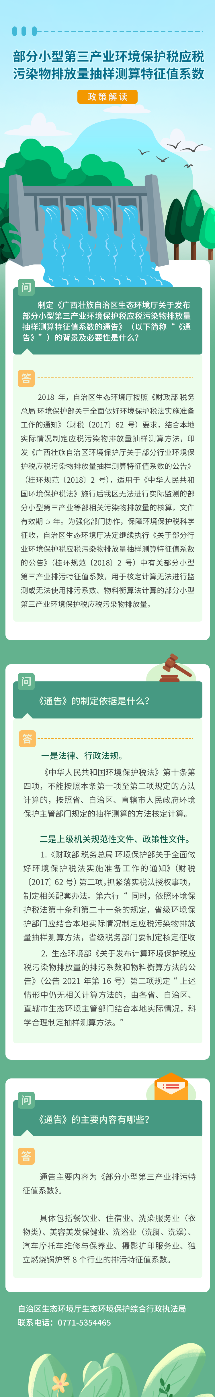 《广西壮族自治区生态环境厅关于发布部分小型第三产业环境保护税应税污染物排放量抽样测算特征值系数的通告》的政策解读