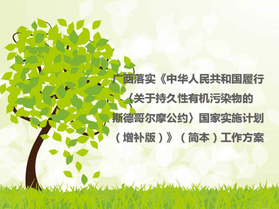 解读《广西落实《中华人民共和国履行〈关于持久性有机污染物的斯德哥尔摩公约〉国家实施计划(增补版)》(简本)工作方案》(以下简称《方案》)编制背景、目的、依据、过程以及主要内容。