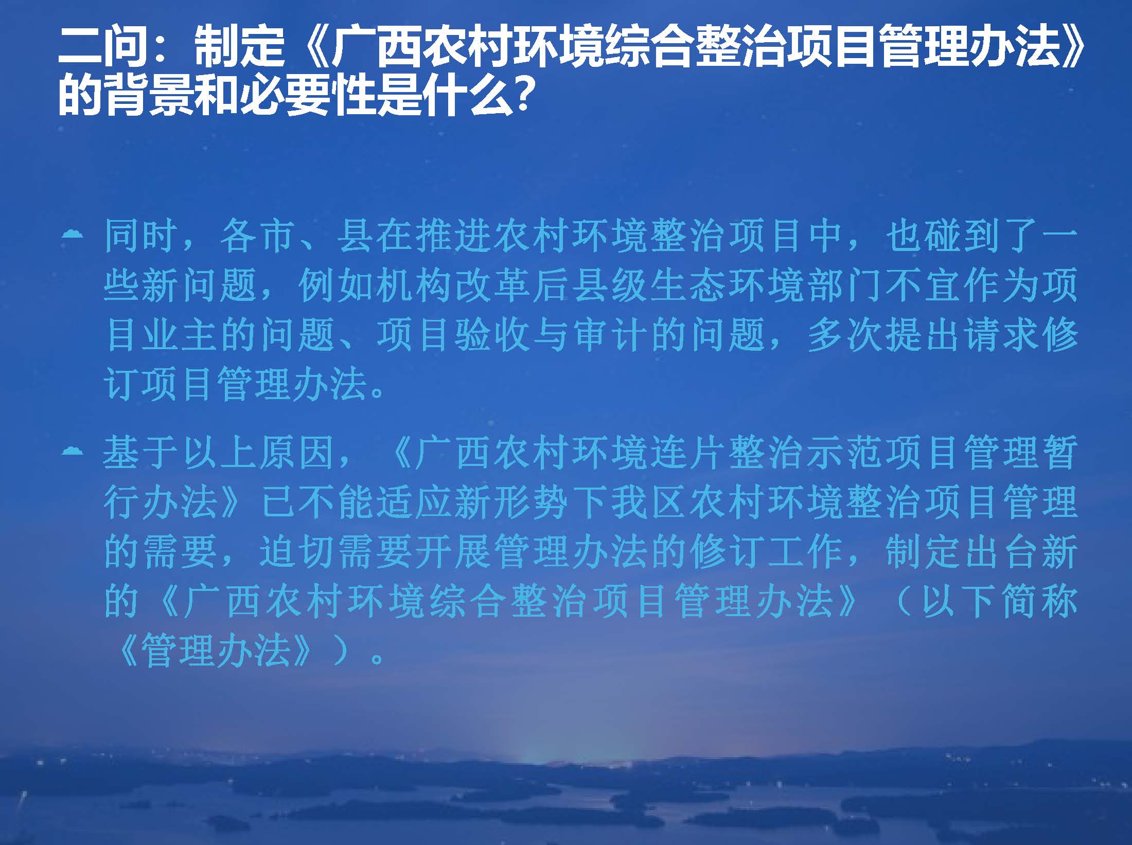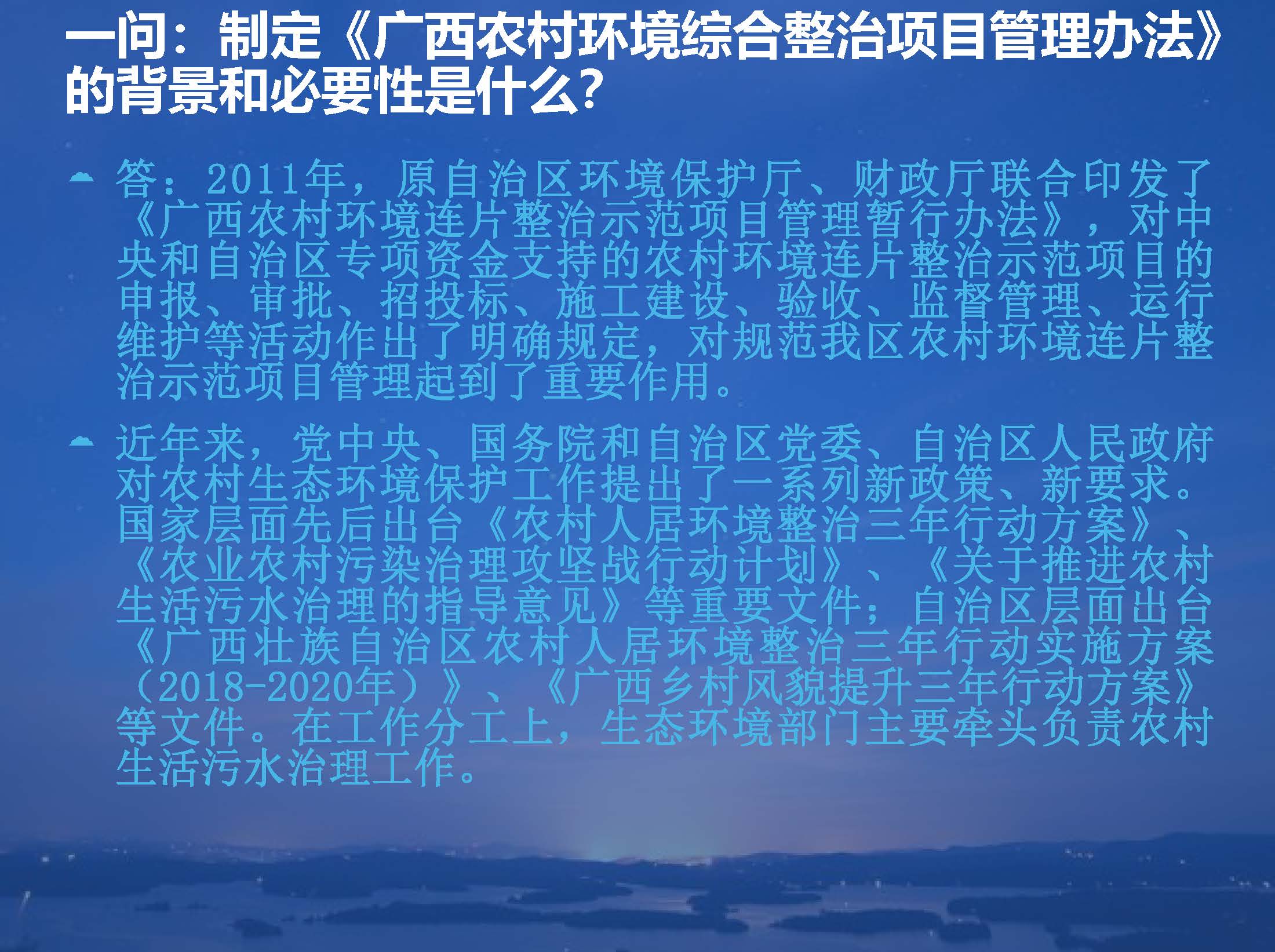 问:制定《广西农村环境综合整治项目管理办法》的背景和必要性是什么?