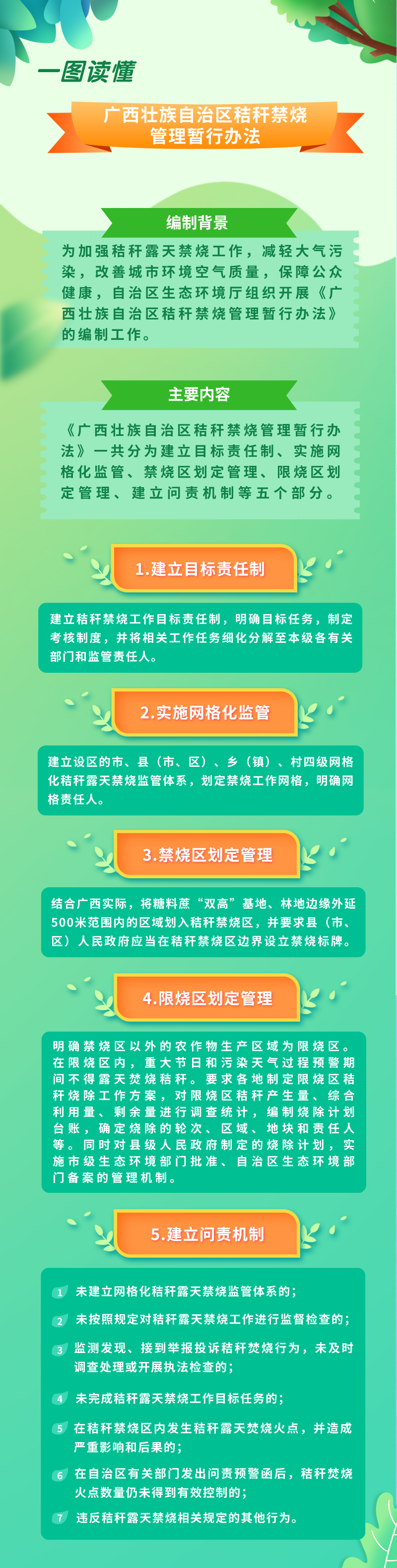 《暂行办法》一共分为建立目标责任制、实施网格化监管、禁烧区划定管理、限烧区划定管理、建立问责机制等五个部分。