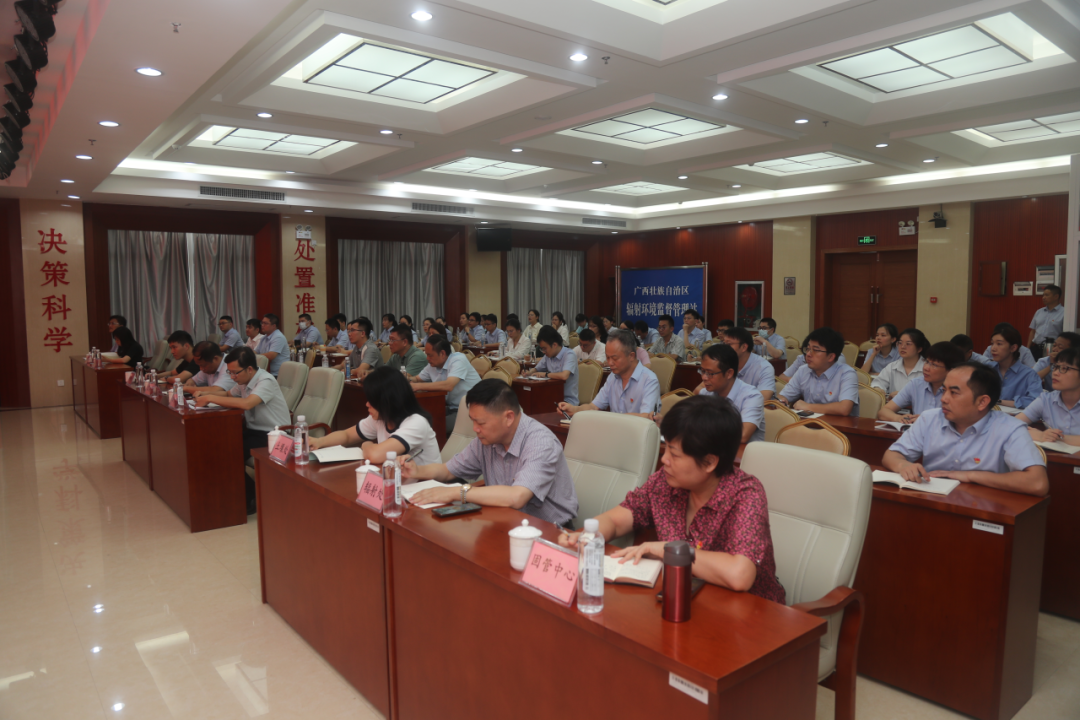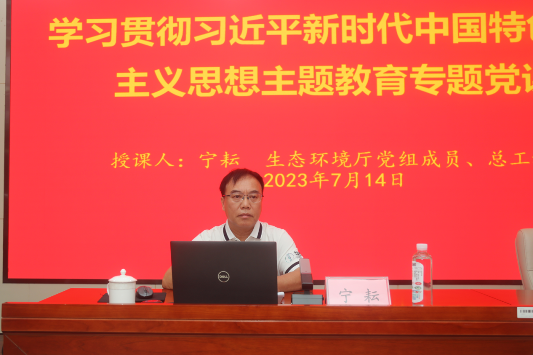 7月14日下午,自治区生态环境厅党组成员、总工程师宁耘在自治区辐射站,为厅机关相关处室单位全体党员讲授一堂“学习贯彻习近平新时代中国特色社会主义思想主题教育,奋力建设人与自然和谐共生的壮美广西”的专题党课。