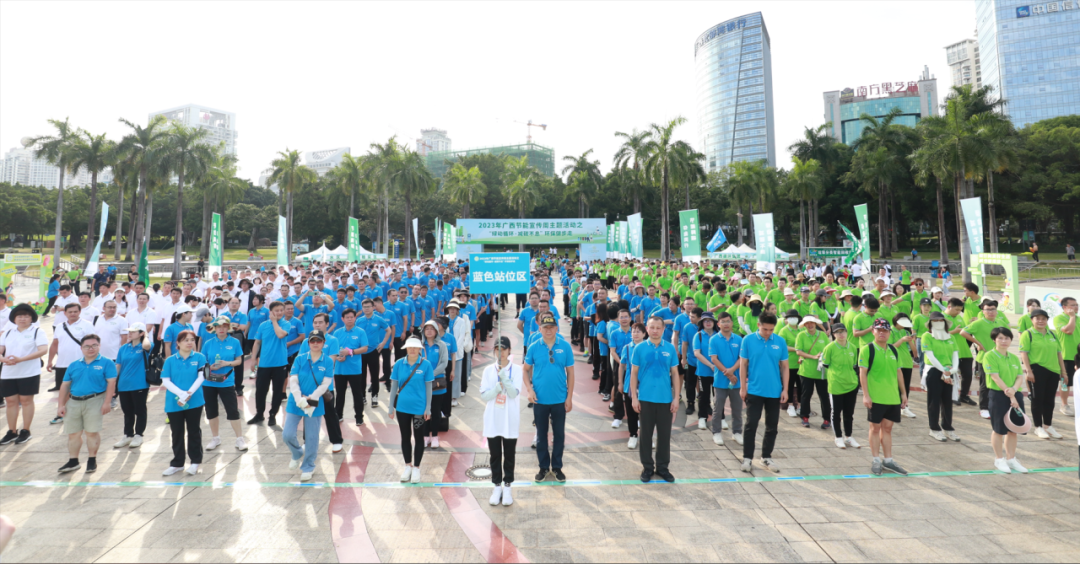 7月10日,自治区生态环境厅会同机关事务管理局、自治区发展改革委举办2023年广西节能宣传周暨低碳日活动启动仪式并开展“绿动循环 减碳不息”环保健步走活动,健步走全程6公里,途中设有低碳骑行计划、光盘行动计划、无纸化办公计划、自带环保袋计划、垃圾分类计划等5个“绿”动循环打卡点,将低碳理念全方位引入工作生活,当天,有1000名环保达人在南宁市南湖公园参加本次活动。低碳知识线上竞答活动也同步开始,活动围绕碳达峰碳中和、绿色低碳生活小常识及节能减排等相关知识设计题目和答案解析,让公众都能“答对题”及“学懂题”,本次活动得到社会公众积极响应,有1000余人参与竞答。
