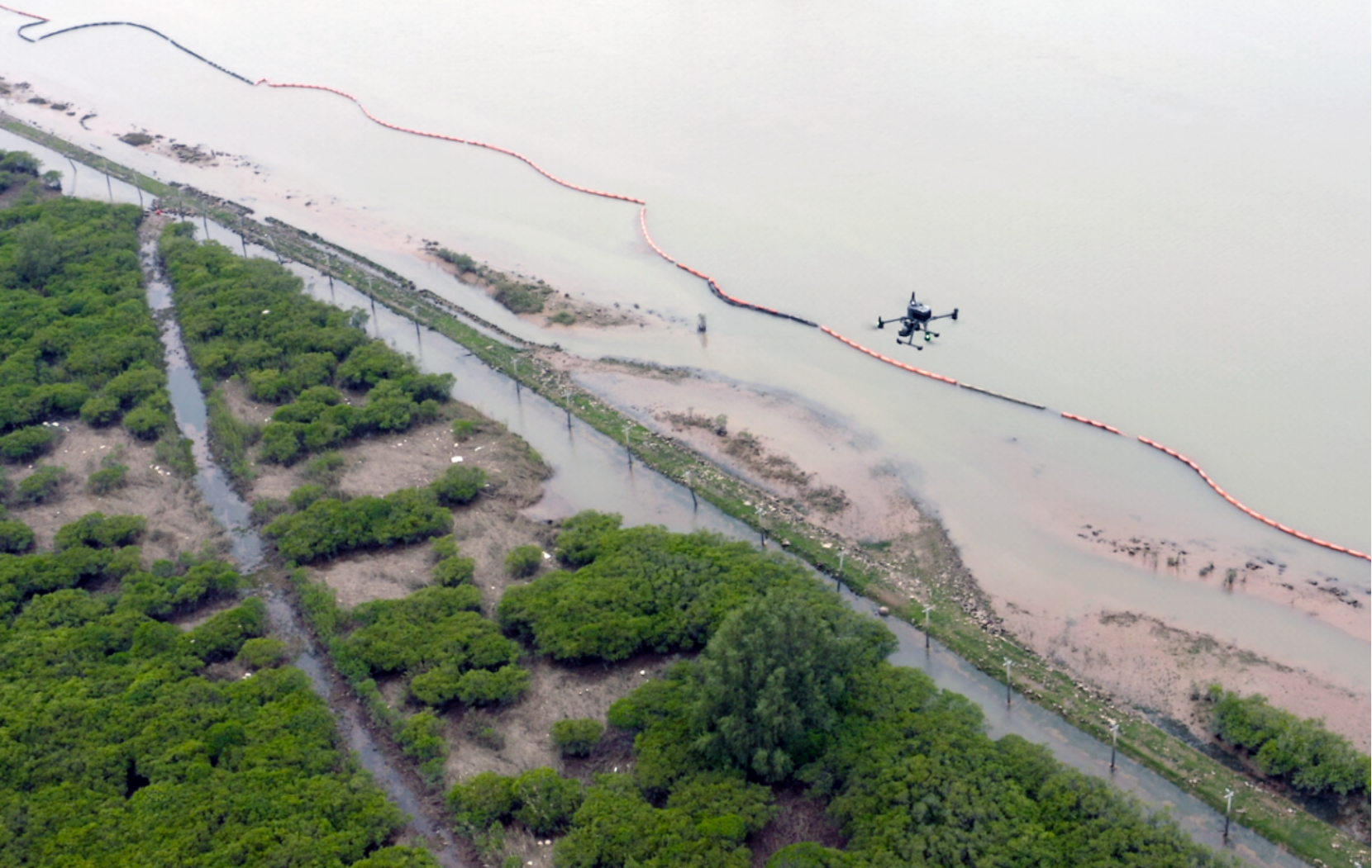 无人机对平陆运河(钦江)入海段--茅尾海区域红树林进行自主巡航监测监控