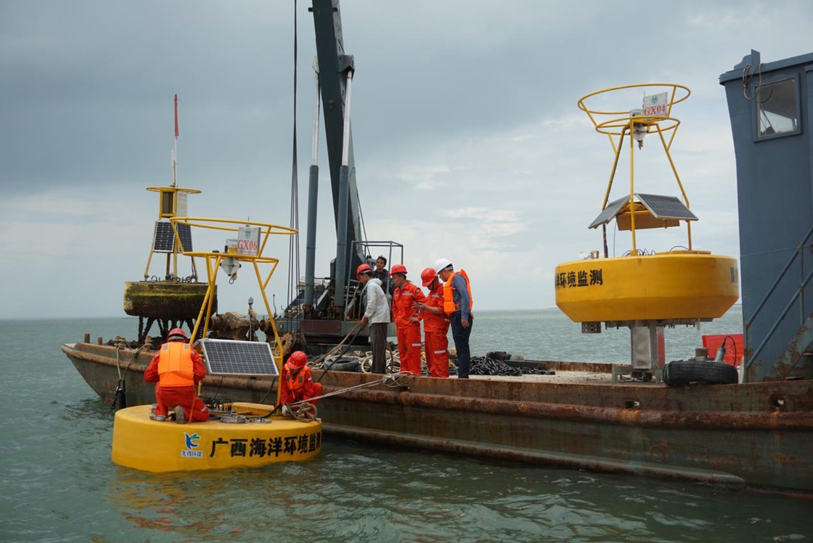 在广西近岸海域投放海水自动监测站