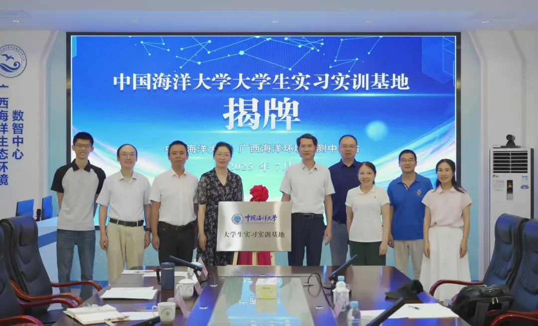 随后,双方进行了座谈交流。广西海洋站首先对任玮娜一行的到来表示热烈欢迎,双方一致认为,广西海洋站在海洋生态环境监测、天空地海一体化监测等领域拥有技术与资源优势,中国海洋大学在科研攻关与人才培养方面实力雄厚,双方“具有先天的合作优势”,期待以此次交流为契机,创新合作模式,推动技术创新、科研攻关、人才培养与成果转化的深度合作,为北部湾海洋生态环境监测和保护开创新局面。会上,双方共同为“中国海洋大学大学生实习实训基地”揭牌,标志着校地人才合作迈入实质性阶段。