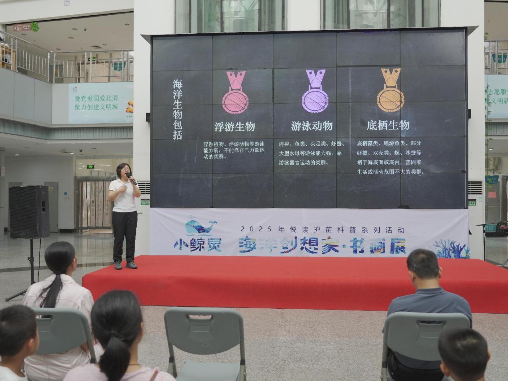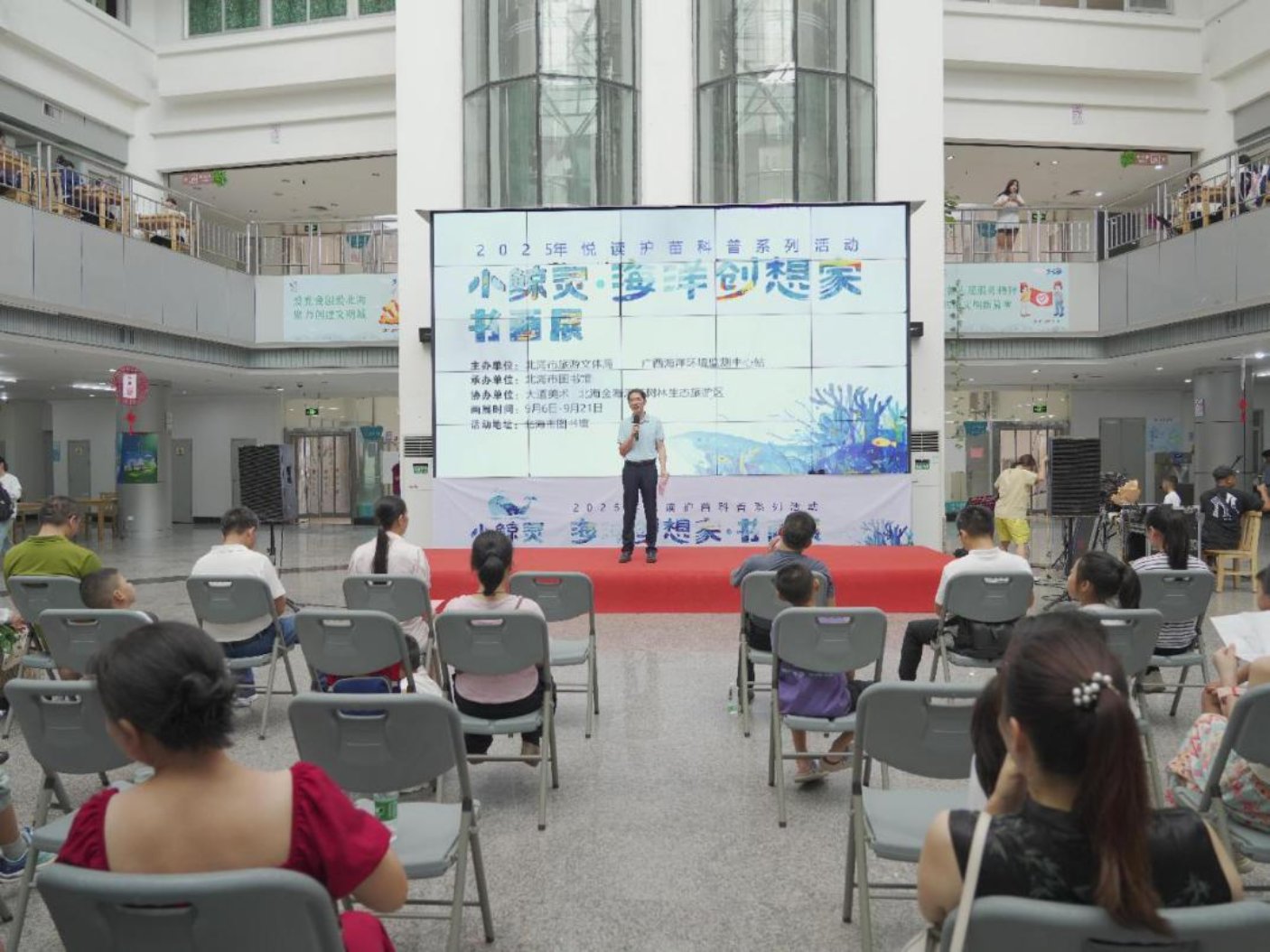 今年9月是我国首个全国科普月,为普及海洋生态环境监测科技与保护知识,增强全民海洋生态环境保护意识。9月6日,广西海洋环境监测中心站联合北海市旅游文体局、北海市图书馆、大道美术、北海金海湾红树林生态旅游区等单位,在北海市图书馆举办了2025年悦读护苗科普行动系列活动——小鲸灵·海洋创想家书画展开幕仪式,活动吸引了众多市民前来参观。