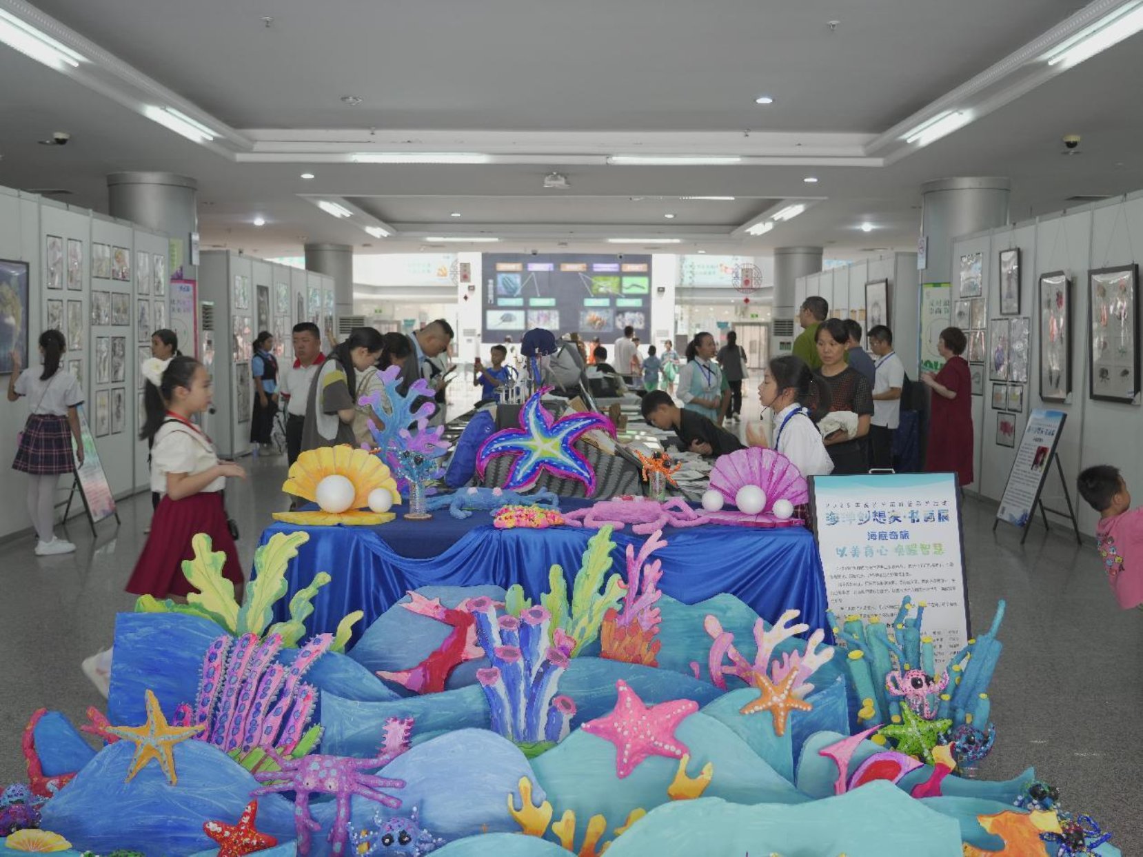 此次画展为期15天,以传递海洋保护理念、深化海洋科普与跨学科教育、推动教育与文旅融合为核心,在前期带领学生深入基地进行研学创作的基础上,通过才艺展演、知识讲解、手工创作与书画赏析等多元形式,将海洋文化之美与生态环境保护理念深度融合,打造“艺术+海洋+教育”特色平台,为公众打造了一场集知识性、趣味性与艺术性于一体的海洋生态保护科普盛宴。