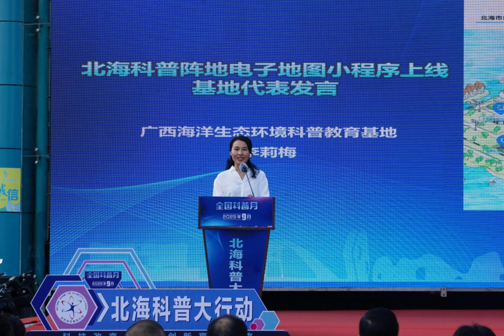 此外,广西海洋环境监测中心站还组织科普工作队员参加首个全国科普月北海科普大行动启动仪式。活动中,广西海洋环境监测中心站作为广西海洋生态环境科普教育基地的承建单位,受邀在北海市科普教育基地电子地图小程序发布仪式上作为科普基地代表发言。同时,在科普集市中,科普工作队员通过科普展板、互动游戏、有奖问答等形式,向市民朋友宣传布氏鲸、中华白海豚等海洋生态环境保护知识,动员更多的人科学、文明观护鲸豚。