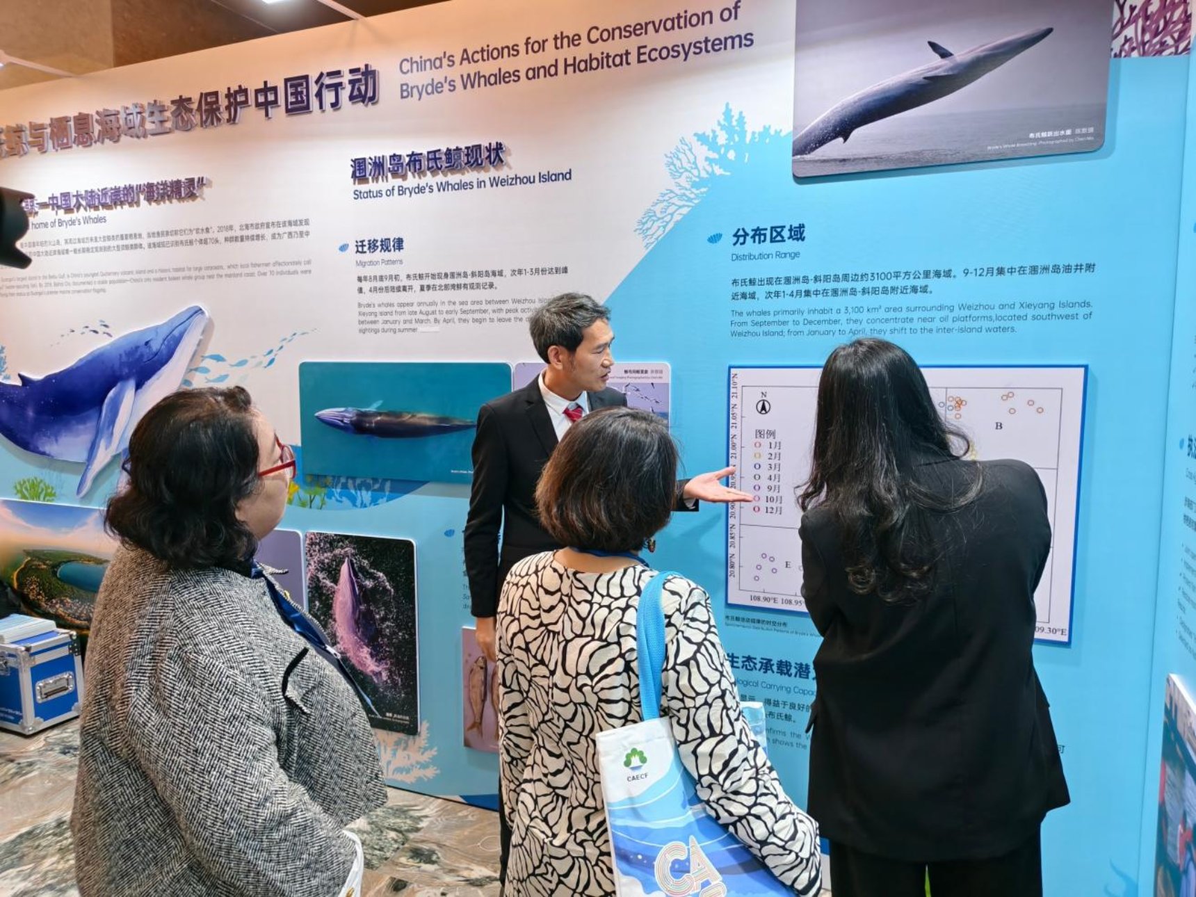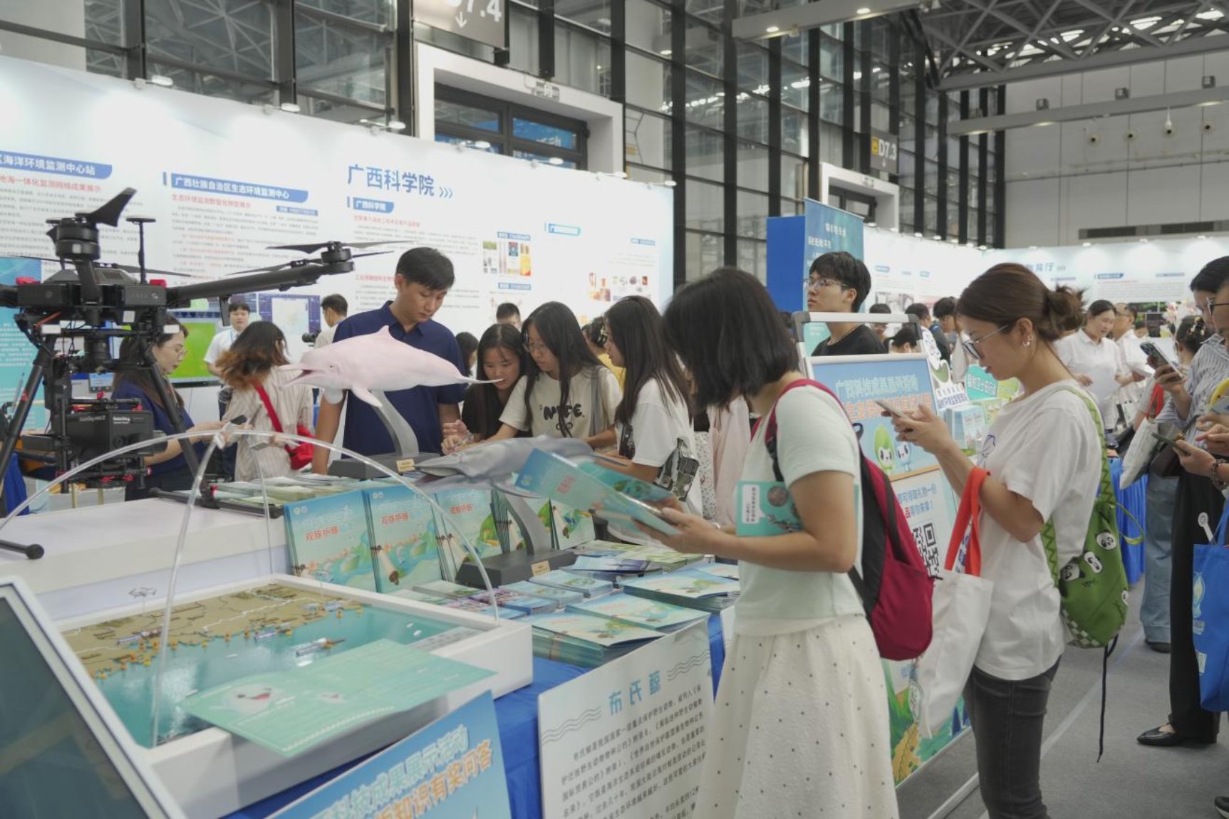 在中国科学院百项重大科技成果入桂转化活动中展示布氏鲸、中华白海豚等海洋生物多样性和海洋生态环境保护监测与成果