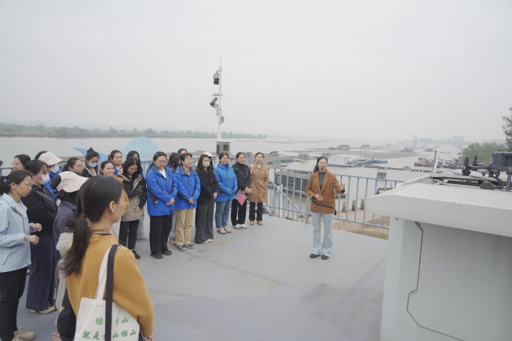 活动从一场名为“巾帼护生态,共谋向海路”的与海相约开始。在茅尾海立体智能综合监测基地,广西海洋站与自治区钦州生态环境监测中心的女职工们从“参与者”转化为“参观者”,通过北部湾生态环境天空地海一体化智能监测与预警平台,实时查看海水水质数据、红树林生境状况、海漂垃圾轨迹,近距离感受“天空地海”一体化监测赋能海洋生态环境保护的强大动能;在红树林公园,女职工们利用生态课堂上学习的红树林和滨海湿地鸟类知识,认真辨认不同种类的红树林特征、观察鸟类,默默许下守护海洋生态环境更坚定的承诺;在沙井港的海滩上,女职工们戴上手套,沿着海岸线清理海滩垃圾,净滩行动虽小,却让每个人真切感受到“守护净滩”的责任与重量。
