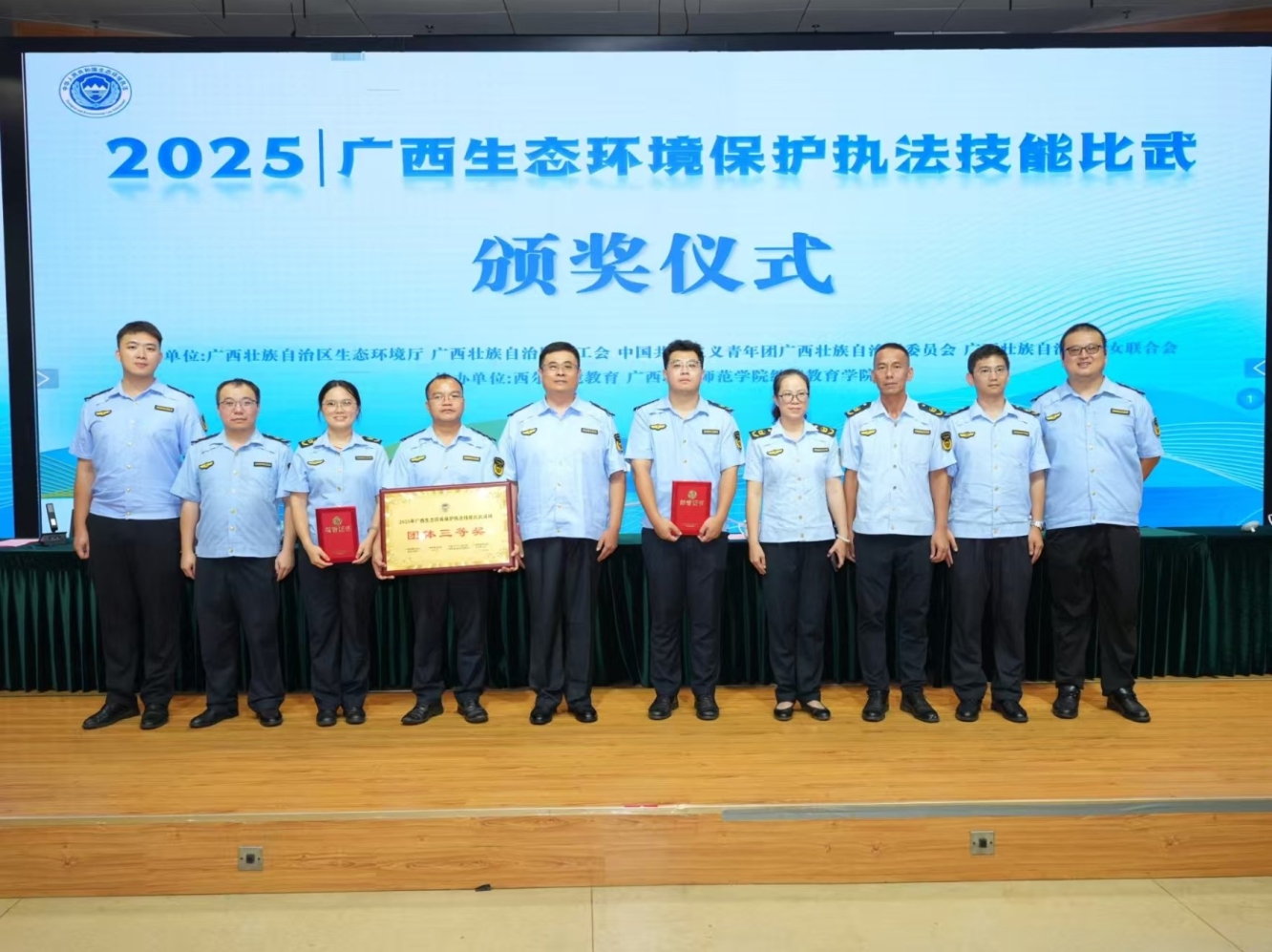 近期,在广西生态环境保护执法技能比武活动中,防城港市生态环境执法队伍代表队以精湛的专业技能、坚韧的拼搏意志和默契的协同配合,一举夺得执法大比武团体三等奖,2名参赛人员获得个人奖二等奖和三等奖,实现了防城港市在全区执法大练兵技能比武中“零的突破”!这一历史性成绩的取得,既是对防城港市生态环境铁军过硬本领的生动诠释,更是防城港市环境执法监管能力建设迈向高质量发展的鲜明注脚。