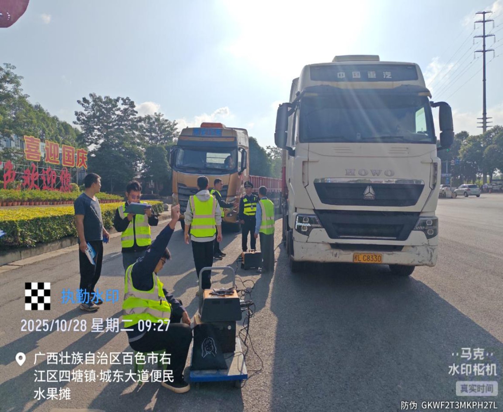 三是联动共治,凝聚协同监管“硬合力”。百色市生态环境局积极对接市场监管、公安、交通等部门,建立健全机动车污染防治联动机制,形成“监管+执法+服务”的工作合力,完善“源头管控—过程监测—末端执法”全过程监管机制,压实企业主体、部门监管、协同整改等各环节责任。聚焦重型柴油货车大户和重点车辆,每周在关键路段和用车大户开展路检路查和抽测,累计宣传发放《致广大柴油车车主的一封信》约1000多份,现场抽查检查重型柴油车1336辆,重点检查不正常使用污染控制装置、不正常添加尿素、不正常运行OBD、擅自改装污染控制装置、擅自篡改OBD、冒黑烟等“三不两改一黑”问题,发现问题车辆及时指导和提醒督促车主维修治理,联动共治,筑牢用车合规与环保防线。