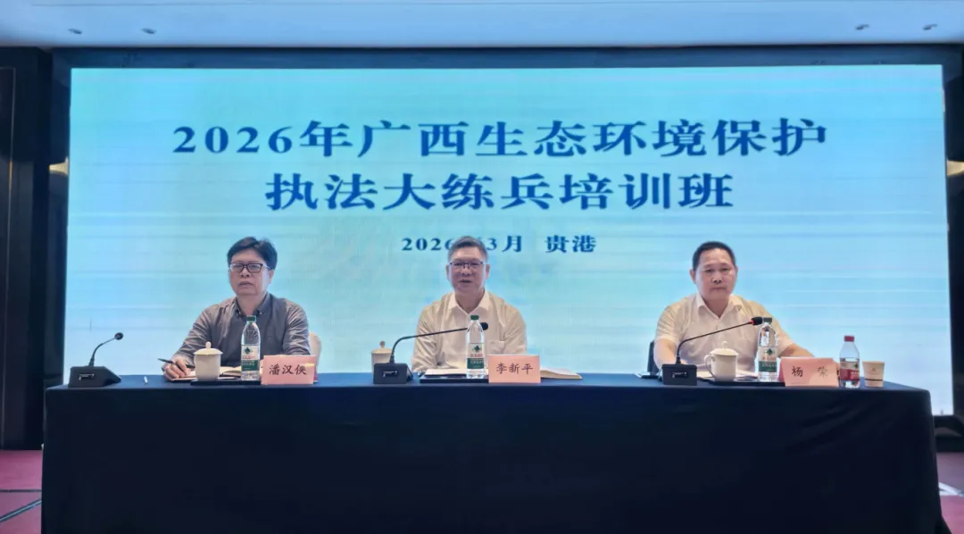 为深入贯彻习近平生态文明思想和习近平法治思想,学习贯彻《中华人民共和国生态环境法典》,全面提升生态环境执法队伍专业能力与实战水平,3月25日至27日,自治区生态环境厅在贵港市举办2026年广西生态环境保护执法大练兵培训班,自治区生态环境厅二级巡视员李新平出席开班仪式并作动员讲话,来自基层的100余名执法业务骨干参加培训。
