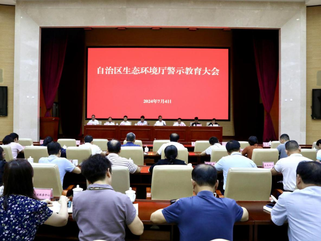 7月4日,自治区生态环境厅召开警示教育大会,深入学习贯彻习近平总书记关于全面加强党的纪律建设的重要论述,认真落实党中央、自治区党委和生态环境部党组关于党纪学习教育的部署要求,学习贯彻新修订的《中国共产党纪律处分条例》,教育引导全区生态环境系统广大党员干部要从违法违纪典型案例中汲取教训,不断筑牢拒腐防变的坚固堡垒,始终做到忠诚干净担当。自治区生态环境厅党组书记、厅长陈亮主持会议并讲话。驻厅纪检监察组组长、厅党组成员谢忠文结合全区生态环境系统近年来发生的一些典型案例,就新修订的《中国共产党纪律处分条例》进行了专题辅导。大会现场