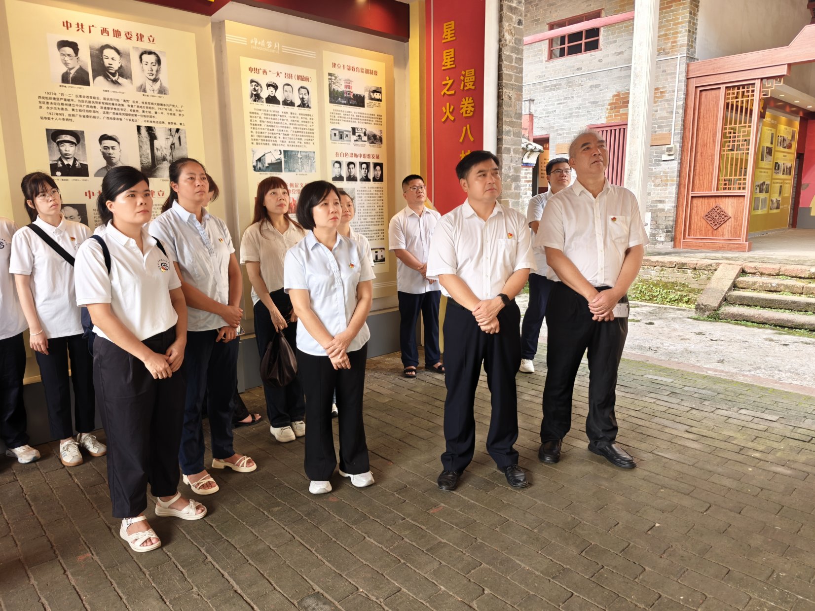 在中共广西特委机关旧址(黎家庄),斑驳的弹痕砖墙、泛黄的革命文物将党员们带回峥嵘岁月。玉林监测中心全体党员聆听革命先辈在白色恐怖中坚守信仰、开展斗争的事迹,触摸历史痕迹,感悟“清贫不移志、生死见担当”的精神内核。走进李明瑞、俞作豫烈士纪念馆,党员们沉浸于那段波澜壮阔的革命历史中。泛黄的照片、珍贵的遗物,生动再现了李明瑞、俞作豫等先烈为国家独立、人民解放抛头颅、洒热血的英雄事迹。大家驻足良久,透过历史的尘埃,仿佛看到先烈们浴血奋战的身影,心灵受到强烈震撼,对“担当”二字有了更深刻的理解。