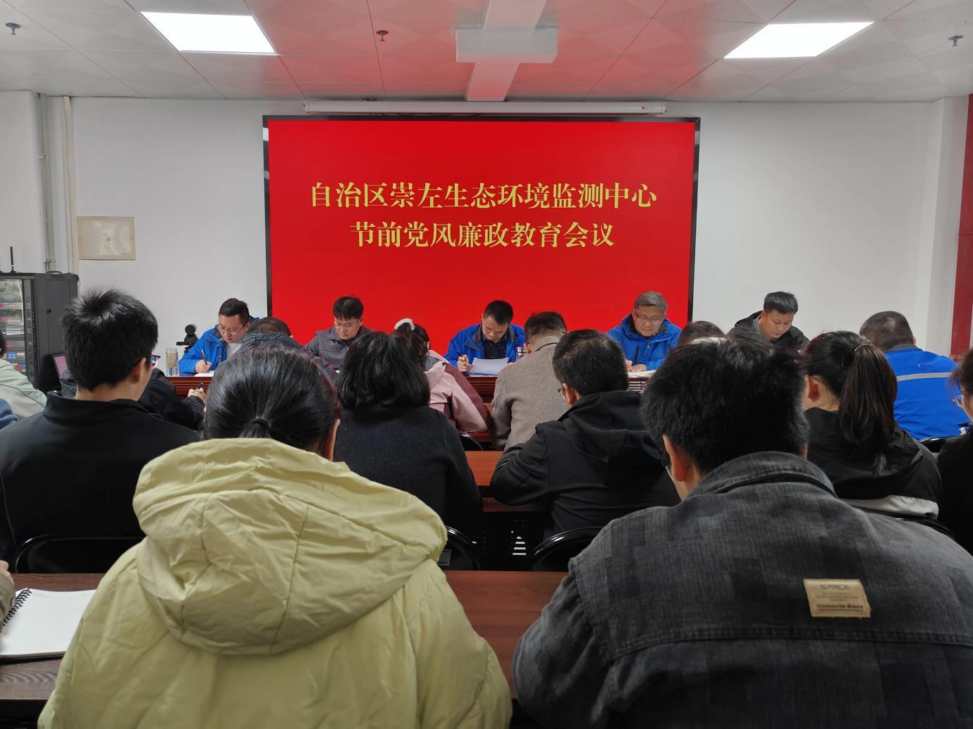 新岁序开,清风送廉。为深入贯彻落实党的二十大和二十届历次全会精神以及二十届中央纪委五次全会精神,持续深化清廉环保建设,筑牢干部职工拒腐防变思想防线,营造风清气正、廉洁祥和的节日氛围,自治区崇左生态环境监测中心(以下简称“崇左中心”)于2026年初,组织开展“清风护航开好局 廉洁修身迎新春”系列廉政教育活动,通过四项扎实举措,为新一年生态环境保护工作开好局、起好步提供坚强纪律保障。