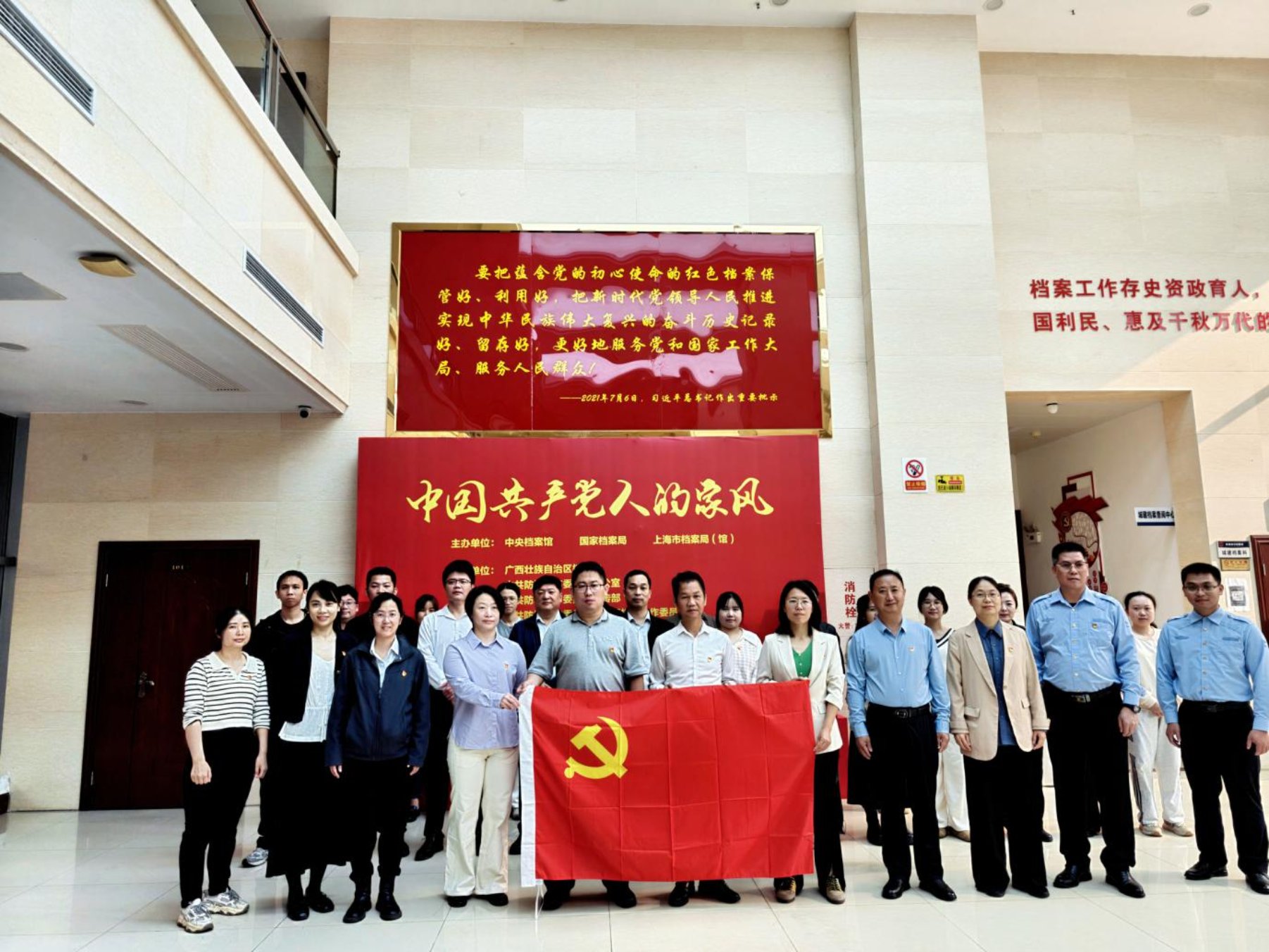 为深入贯彻落实党的二十届四中全会关于加强家庭家教家风建设的部署,持续加强清廉环保建设与新时代廉洁文化建设,近日,广西壮族自治区防城港生态环境监测中心(以下简称“防城港中心”)党支部联合防城港市生态环境局党总支、大气污染防治攻坚自治区第六监督帮扶组临时党支部,组织全体党员、入党积极分子走进防城港市档案馆,共同开展主题党日活动,以红色家风涵养清朗党风政风。