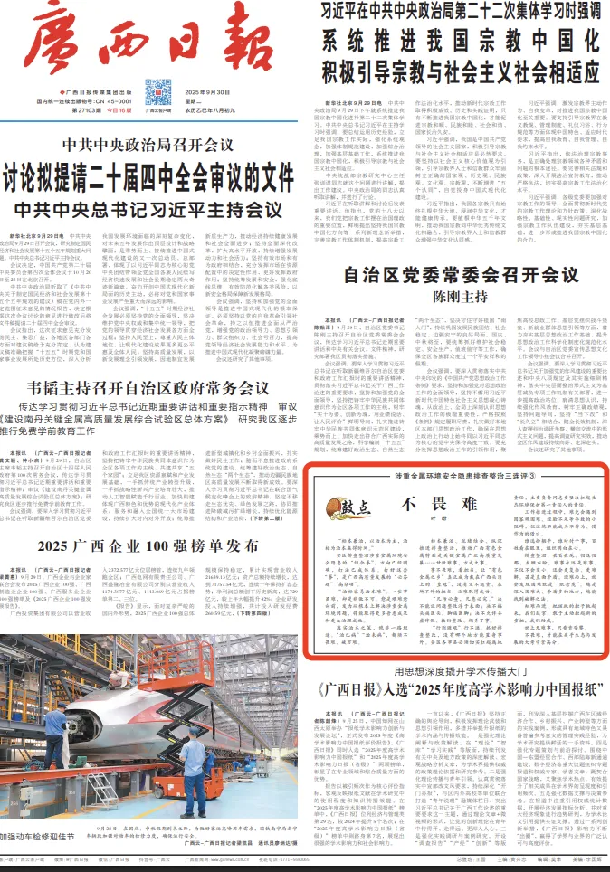 今日(9月30日),广西日报头版刊发“鼓点”评论文章《涉重金属环境安全隐患排查整治三连评③:不畏难》。全文如下——