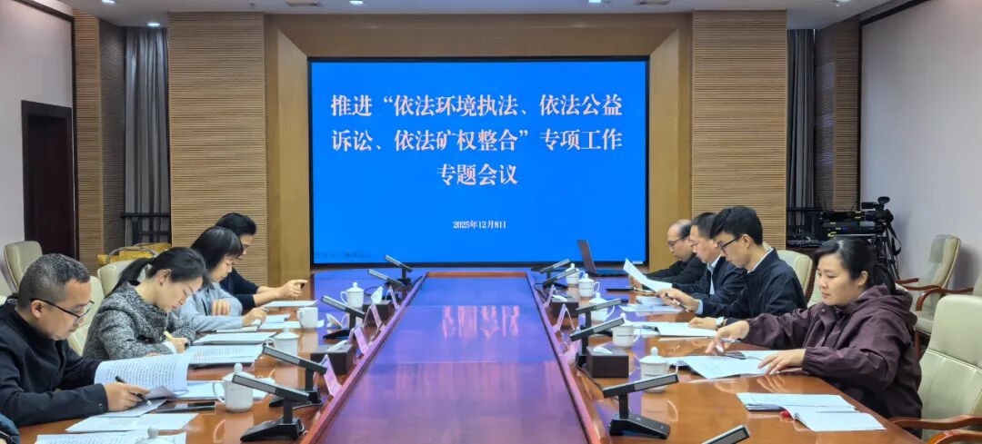 会上,自治区高级法院、自治区检察院、自治区公安厅、自治区自然资源厅等部门汇报涉重金属环境执法、检察公益诉讼及矿产权整合的工作进展情况,并就推动“三个依法”落实发表意见。