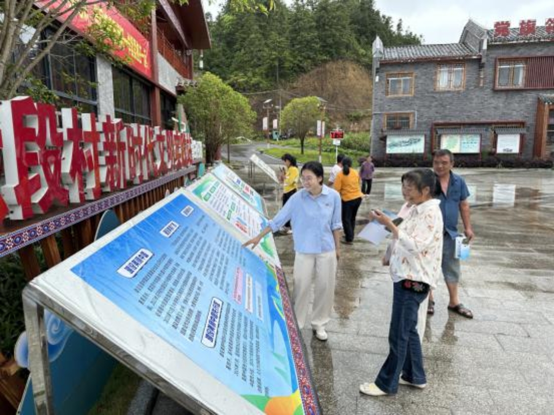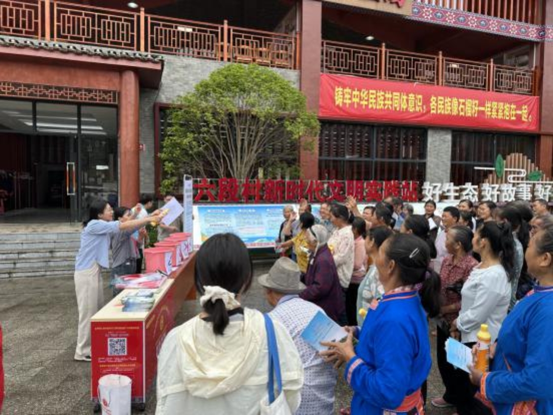 活动现场通过设立宣传展板、发放宣传手册、现场讲解、有奖问答等方式,向村民们宣传普及民族团结进步、生态环境保护知识、倡导村民在生活中和谐互助、践行低碳生活理念,持续增强六段村各族群众铸牢中华民族共同体意识和生态环境意识。
