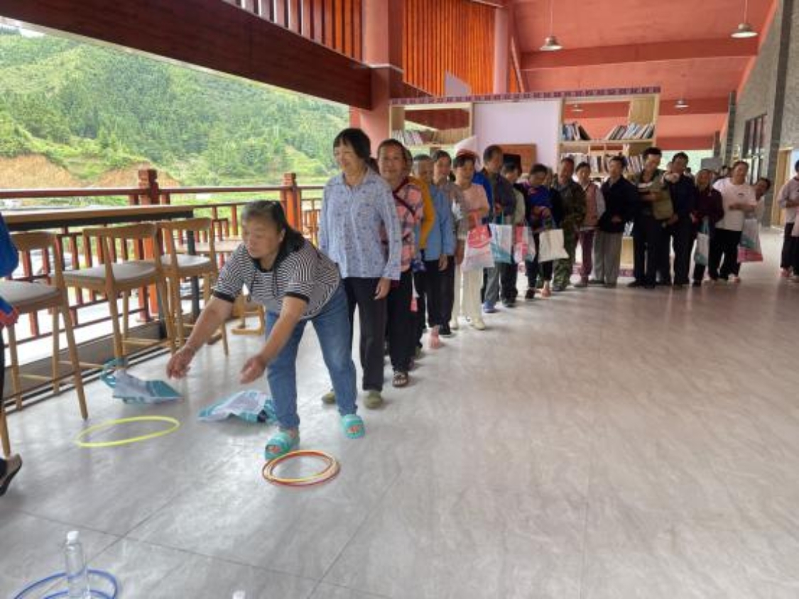 有奖问答之后是游园游戏。活动现场有套圈、筷子夹弹珠、反手抓笔等类型多样、趣味十足的小游戏。六段村各族人民群众踊跃参与,现场一片欢声笑语。