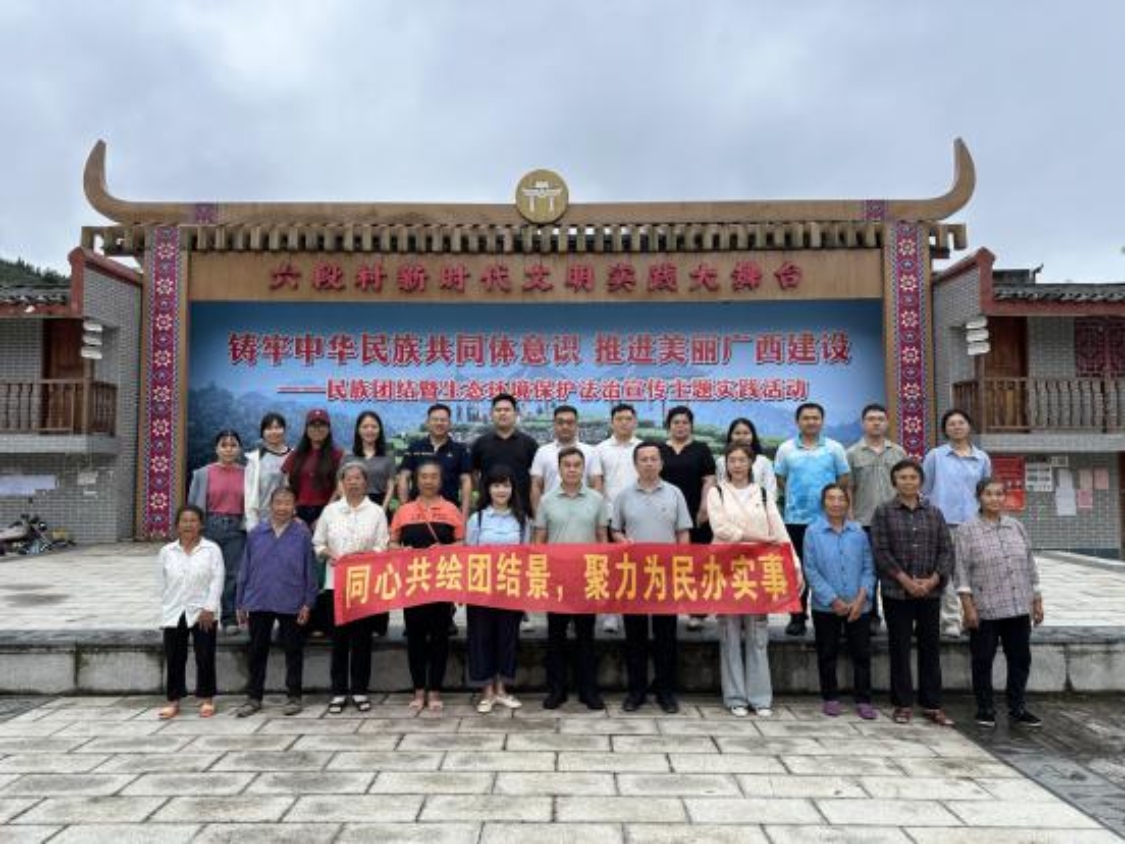 自治区生态环境厅深入贯彻落实习近平总书记关于加强和改进民族工作的重要思想,贯彻落实自治区党委、政府关于广西建设铸牢中华民族共同体意识示范区决策部署,坚持把铸牢中华民族共同体意识作为生态环境保护工作的主线,以生态环境高质量保护、巩固拓展脱贫攻坚成果同乡村振兴有效衔接,以构筑中华民族共有精神家园为引领,着力建设宜居康寿美丽家园等“五个家园”。2025年6月27日,由自治区生态环境厅主办,广西环保产业协会、金秀瑶族自治县金秀镇六段村承办的“铸牢中华民族共同体意识 推进美丽广西建设”民族团结暨生态环境保护法治宣传主题实践活动在六段村举办。