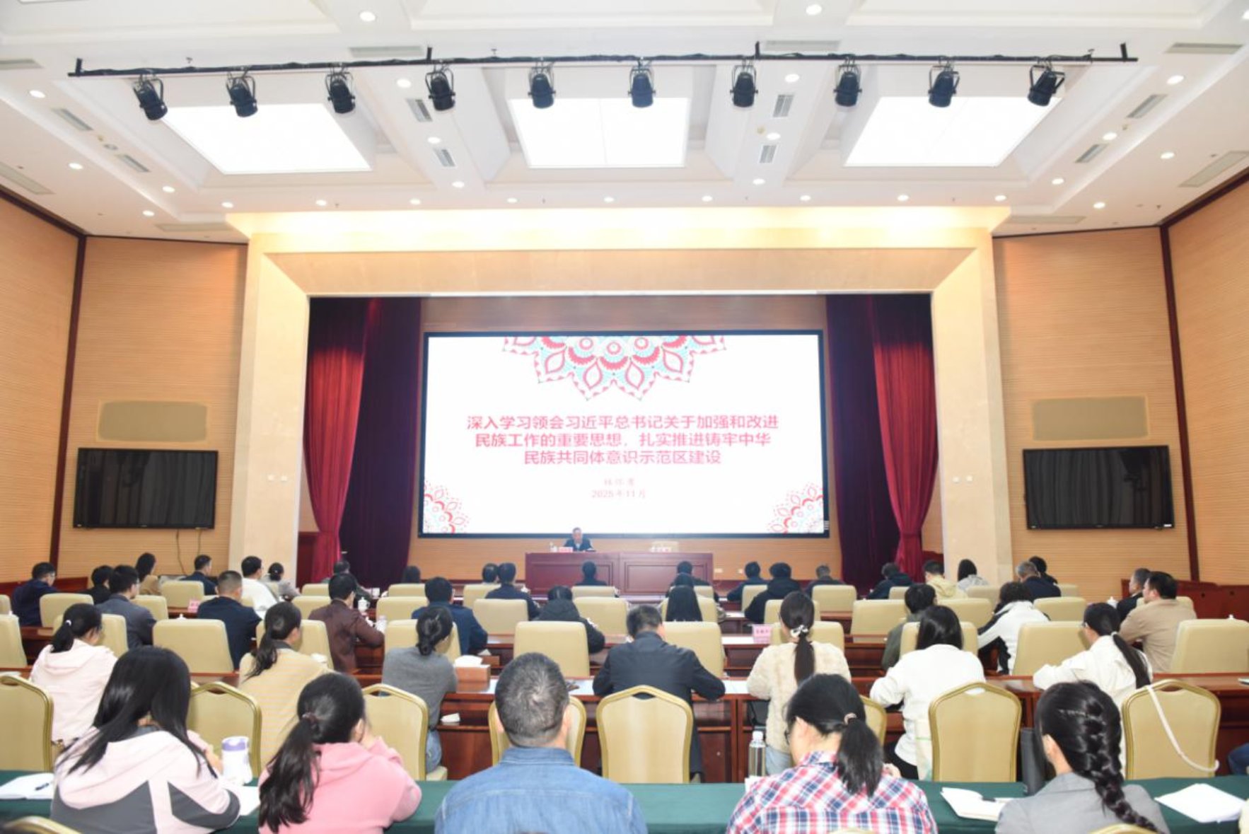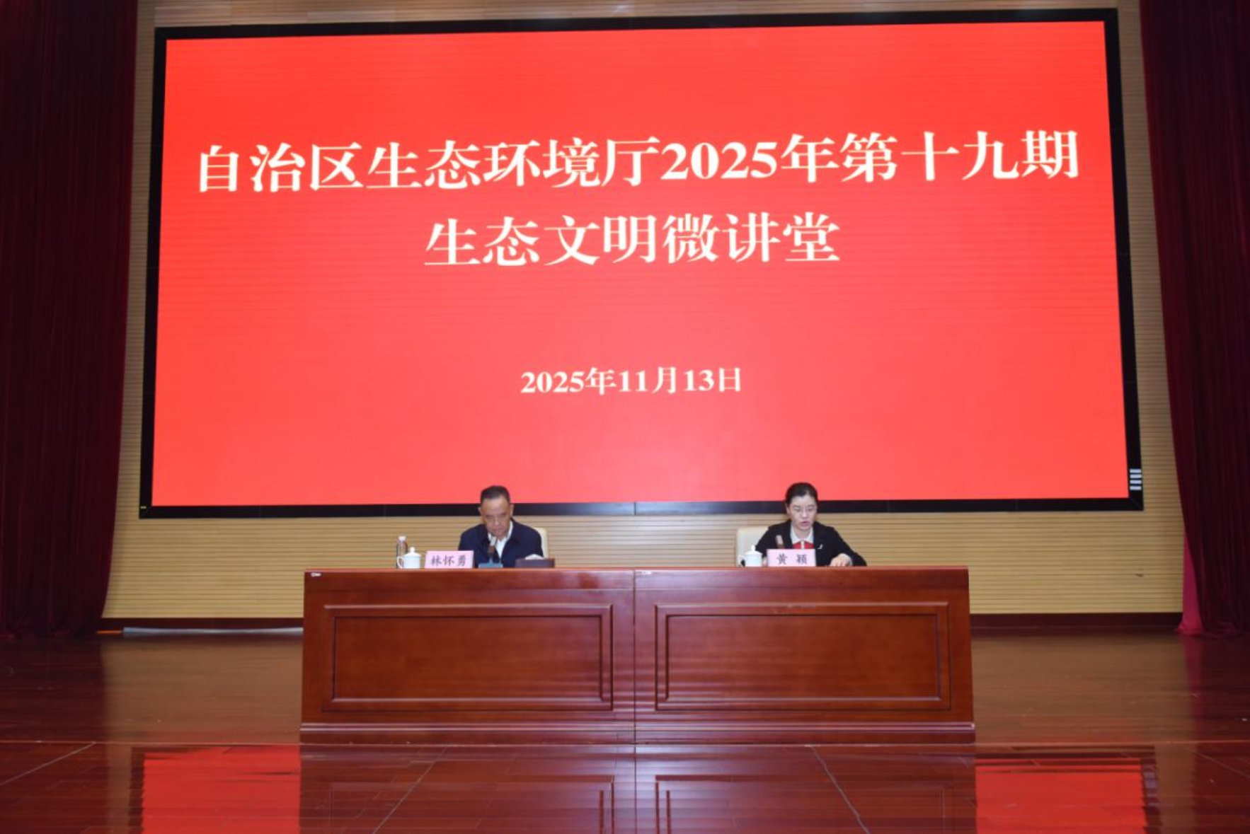 为深入贯彻落实党的二十届四中全会精神和习近平总书记关于加强和改进民族工作的重要思想,贯彻落实自治区党委、政府关于建设铸牢中华民族共同体意识示范区决策部署,深化铸牢中华民族共同体意识宣传教育,进一步提高全区生态环境系统干部铸牢中华民族共同体意识,2025年11月13日,自治区生态环境厅举办第十九期“生态文明微讲堂”,邀请自治区党委统战部常务副部长、广西铸牢中华民族共同体意识研究会秘书长林怀勇作专题授课。此次微讲堂活动采用“线上+线下”方式,厅机关设主会场,各市生态环境局、各驻市环境监测中心通过网络视频设立分会场。