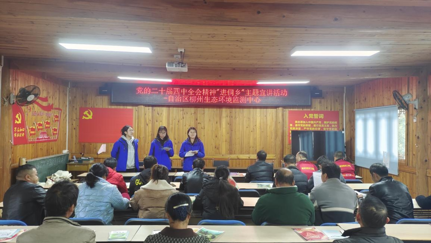 在古宜镇岩脚村村委,工作队员聚焦“生态环境保护”这一与乡村发展息息相关的主题,结合党的二十届四中全会关于“推动绿色发展,促进人与自然和谐共生”的精神,进行了生动讲解。为提升宣传效果,柳州中心还专门制作了主题宣传单页,正面印着“守护绿水青山,共建美丽家园”等醒目标语,背面是精心梳理的相关政策要点。“这样一看就明白,政策跟我们生活是连着的。”一位村民的感叹道出了大家的心声。通过发放资料、现场解读与答疑互动,活动不仅传递了政策温度,更在交流中增进了理解,凝聚了干群携手推进乡村全面振兴的合力。