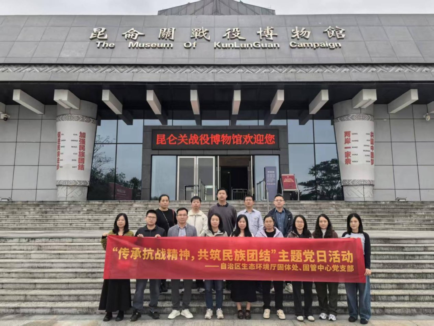 为纪念中国人民抗日战争暨世界反法西斯战争胜利80周年,弘扬伟大抗战精神,凝聚民族团结奋进力量,2025年12月23日,自治区生态环境厅固体处党支部联合固管中心党支部赴南宁昆仑关爱国主义教育基地,开展“传承抗战精神 共筑民族团结”主题党日活动。