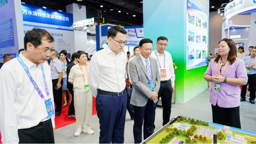 开幕式后,赵英民一行参观环保展,中国环保产业协会会长郭承站陪同参观。