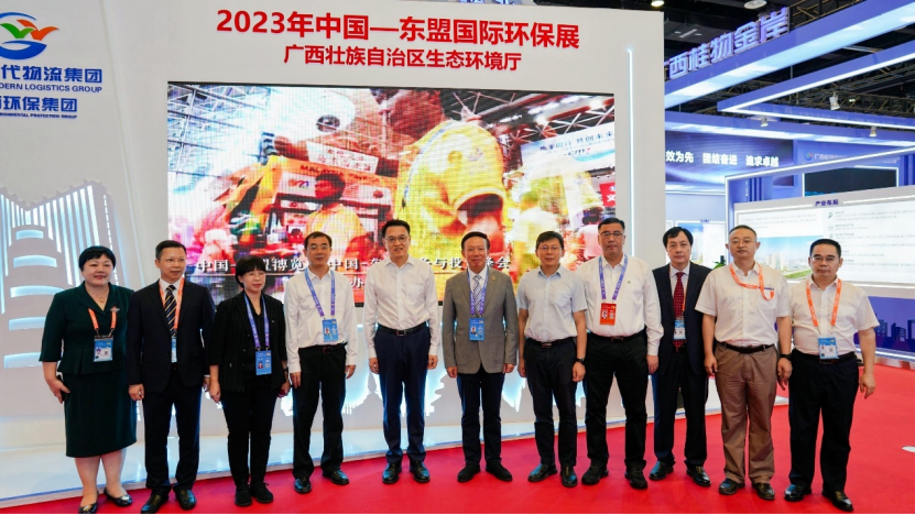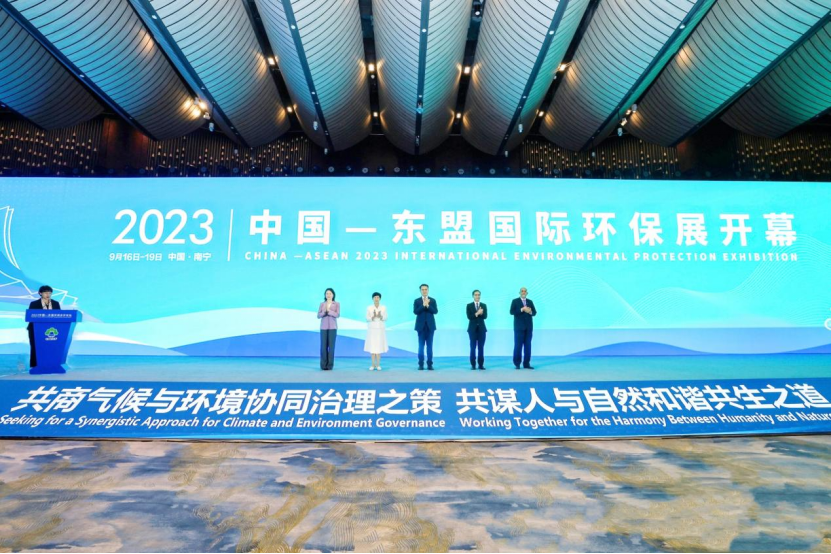 为深入贯彻习近平生态文明思想和全国生态环境保护大会精神,高质量共建“一带一路”,共促中国—东盟生态环境合作,9月16日,2023年中国—东盟国际环保展(以下简称环保展)在广西南宁开幕。生态环境部副部长赵英民,广西壮族自治区人大常委会副主任杨静华,中国驻东盟使团团长、特命全权大使侯艳琪,老挝自然资源与环境部副部长普旺·卢昂赛萨纳,马来西亚棕榈油总署署长拿督·巴威斯共同见证环保展开幕。