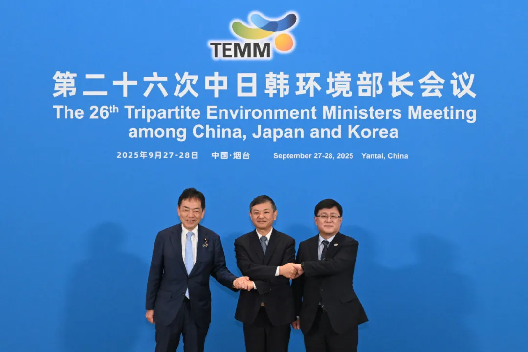 9月27日至28日,第二十六次中日韩环境部长会议在中国烟台举行,会议由中国生态环境部、山东省人民政府联合主办。中国生态环境部部长黄润秋、日本环境省大臣浅尾庆一郎、韩国环境部部长金星焕分别率团出席会议,交流本国环境政策及最新工作进展,并就共同关心的区域和全球环境议题交换意见。会议听取了《中日韩环境合作联合行动计划(2021—2025)》执行进展报告,通过并签署《中日韩环境合作联合行动计划(2026—2030)》和《第二十六次中日韩环境部长会议联合公报》。