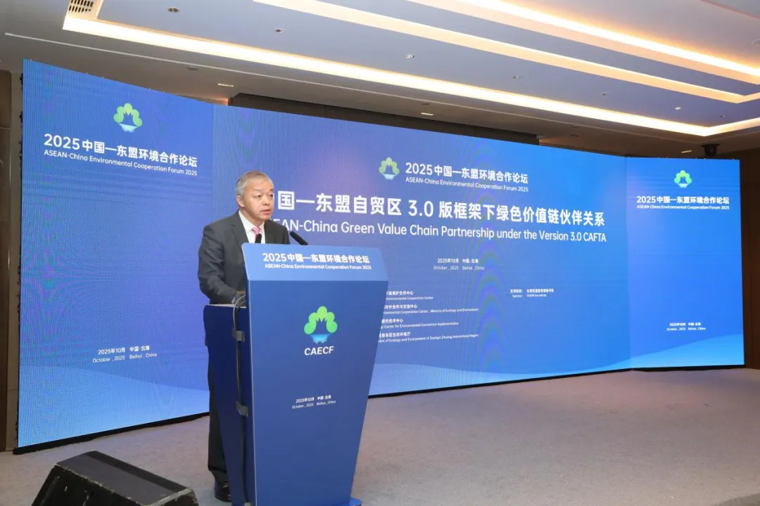 10月22日,2025中国—东盟环境合作论坛平行论坛:中国—东盟自贸区3.0版框架下绿色价值链伙伴关系论坛在广西北海举办。柬埔寨环境部副国务秘书欧恩·班哈涅、东盟秘书处环境部门主任翁索克、自治区生态环境厅二级巡视员潘国尧、生态环境部国际合作司亚非拉处二级调研员付杰出席论坛并致辞。