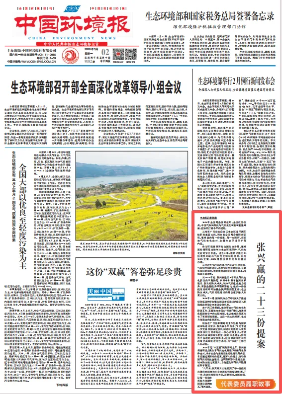 从结束广西壮族自治区生态环境厅两年挂职的基层实践,到奔赴全国两会履职新征程,张兴赢的每一份提案、每一次调研,都紧扣气候变化应对、加强生态环境保护等内容。
